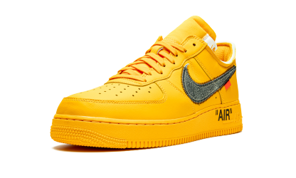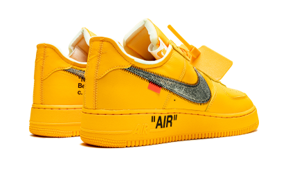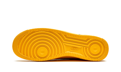 The Off-White x Nike Air Force 1 Low “University Gold” is a positively blinding colorway of Nike’s retro basketball and lifestyle shoe created in collaboration with Off-White and Virgil Abloh. Synchronizing with the opening of Abloh’s “Figures of Speech” exhibit at Boston’s Institute of Contemporary Art in Summer 2021, the Off-White-designed “University Gold” colorway features a predominately monochromatic yellow construction. The perforated toe, mid-panel, collar, and heel are all dressed in University Gold leather. Contrast stitching borders the metallic silver Swoosh logo found on either side of the shoe and tonal “Nike Air” embroidery appears on the heel. In signature Off-White fashion, the Air Force 1’s nylon tongue tag has been repositioned to the side of the University Gold nylon tongue for an abstract, “do-it-yourself” look. A yellow plastic zip-tie hangs from the tonal laces. Black “Air” text is printed above tonal “Air” branding on the lateral side of the University Gold-colored rubber midsole. Off-White - University Gold