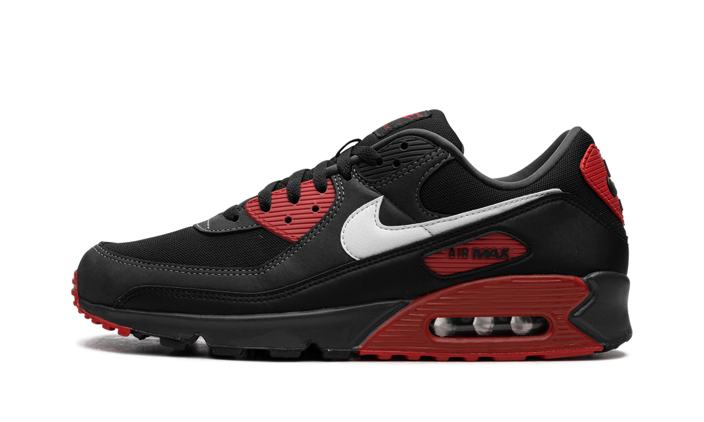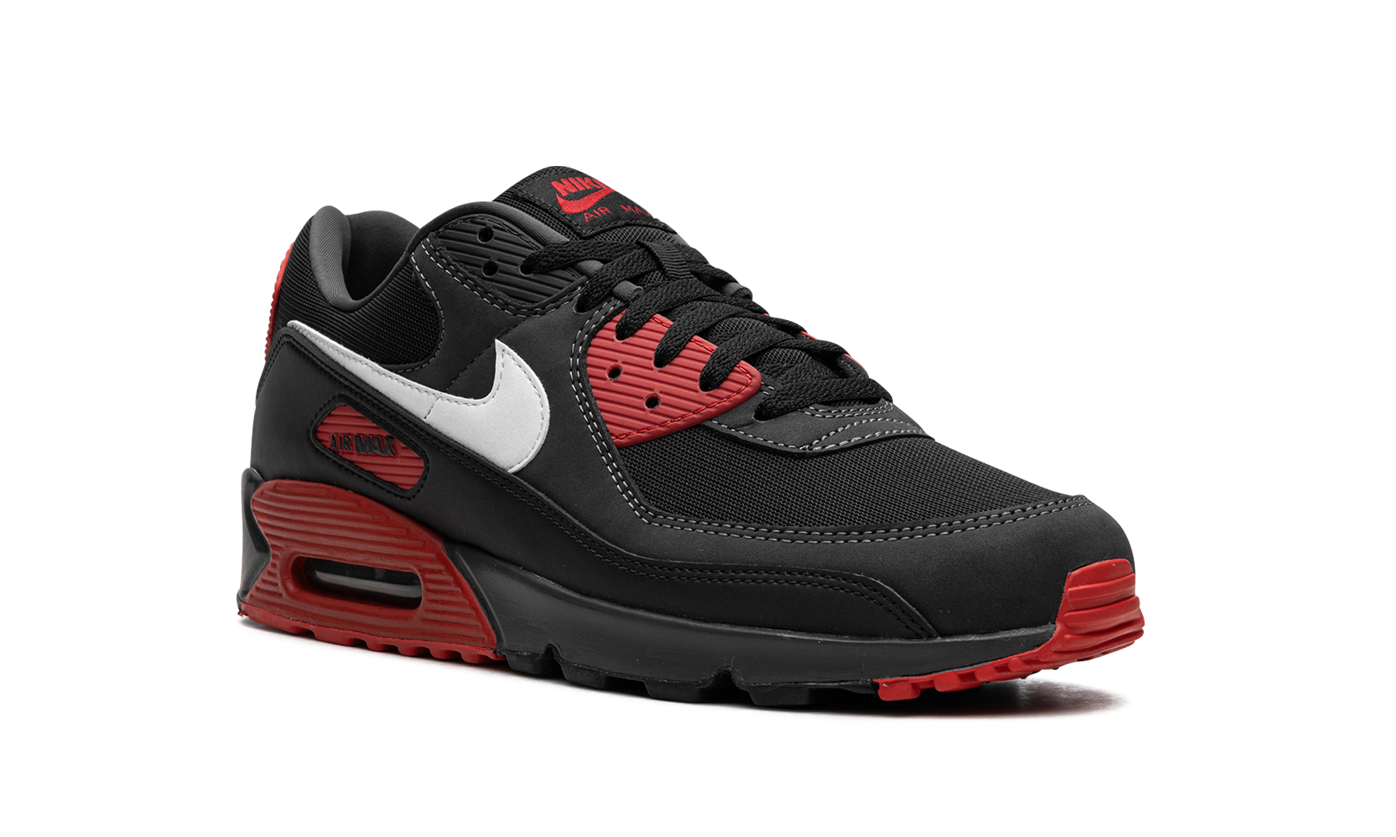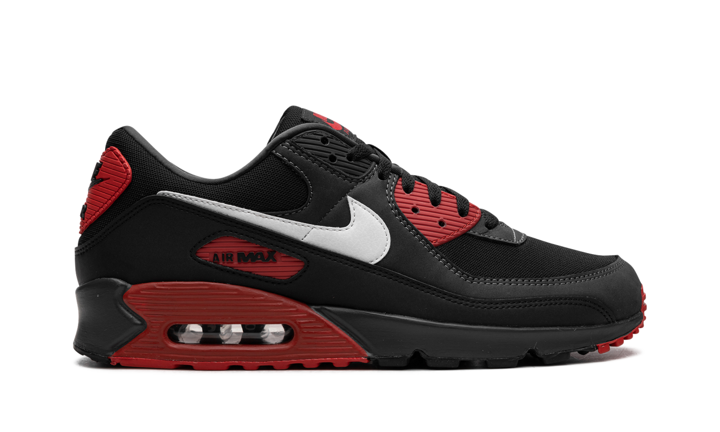 The Nike Air Max 90 "Black/Red" is a colorway of the retro running shoe with fiery red accents. Debuted as the Nike Air Max 3 back in 1990 before changing to the Air Max 90, the retro sneaker is one of the most beloved in all of Nike’s footwear catalog. The “Black/Red” colorway features a black textile base paired with a tonal nubuck mid-panel and mudguard. A white leather Swoosh is seen on both sides of the shoe and a red “Air Max” branding window is found on the lateral side of the mudguard. Additional branding elements include “Nike Air” detailing on the heel and “Nike” logo imagery on the tongue. A visible Air cushioning unit is located within the red-colored panel on the midsole. Release date: September 25, 2023 Black / Red