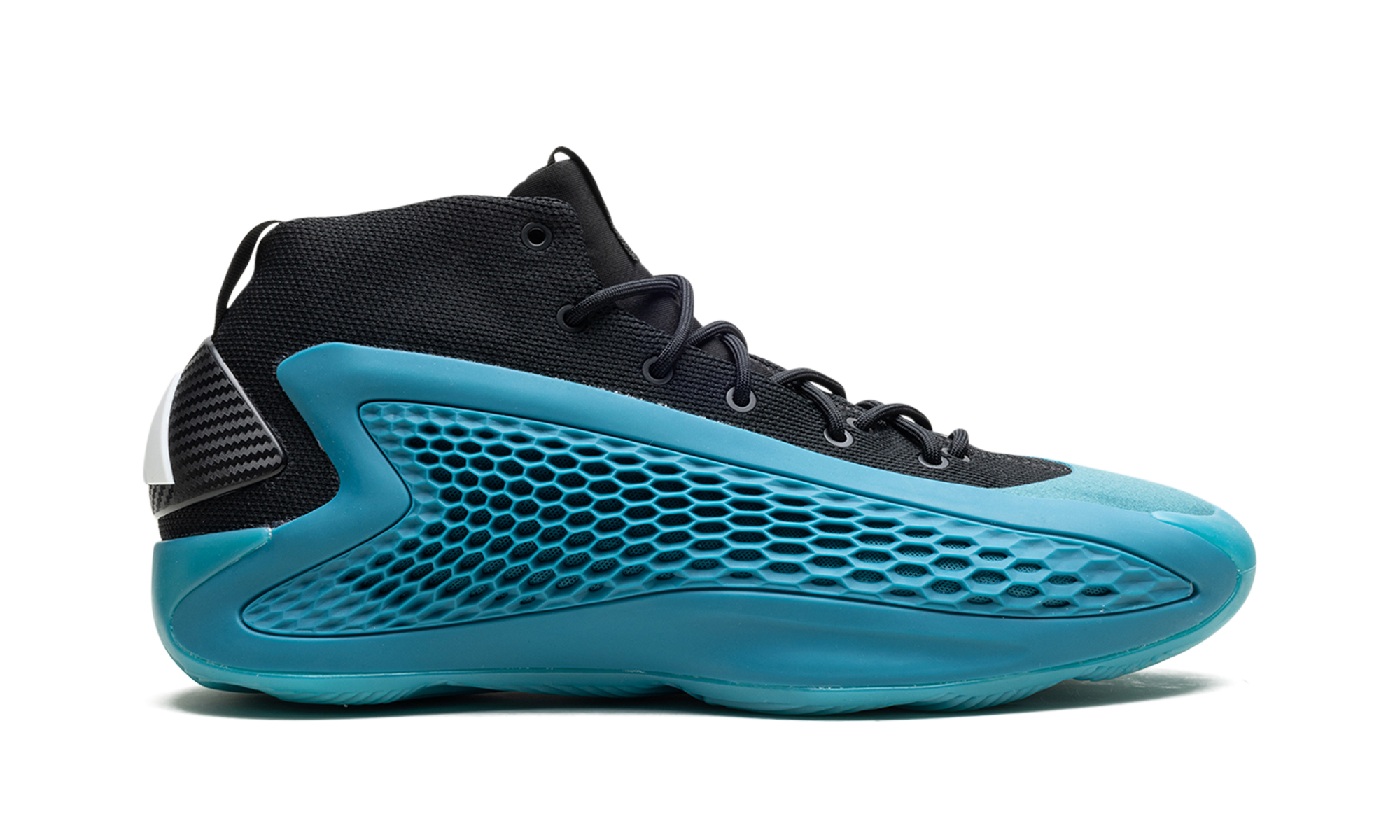The adidas AE1 "New Wave" is a head-turning colorway of basketball star Anthony Edward’s first signature shoe with adidas Basketball. Worn by Edwards during the MInnesota Timberwolves’ media day in October 2023, the adidas AE 1 “New Wave” features an Arctic Fusion-colored TPU “cage” with perforations in a honeycomb pattern that assist in breathability. The black Primegreen base is made of recycled materials. Edwards’ signature branding appears on the woven tongue tag, while adidas Three Stripes branding can be found on the heel. Underfoot, the midsole is designed with a combination of adidas’s Boost and Lightstrike cushioning for superior performance and energy return.