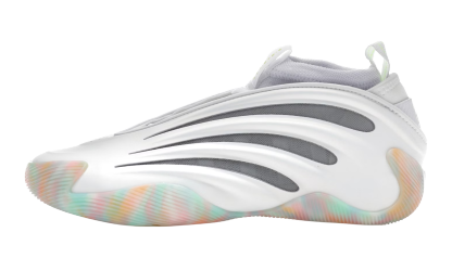 Step into the future of performance with the adidas Harden Vol. 9, model JP6099, in the striking "3SSB" (adidas 3-Stripe Select Basketball) colorway. This silhouette pushes the boundaries of design with its sleek, aerodynamic white foam wing that wraps around a breathable gray mesh inner bootie. The standout feature is the vibrant, multi-colored marbled outsole—blending pastel pinks, oranges, and teals—designed to provide elite multi-directional traction. Engineered for James Harden's signature playstyle, these kicks offer a perfect fusion of high-fashion "clout" and hardwood-ready stability.