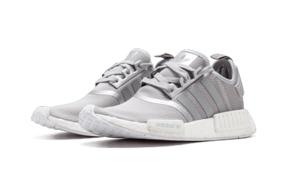 This flashy look for the women’s adidas NMD features a grey mesh upper with metallic silver accents.