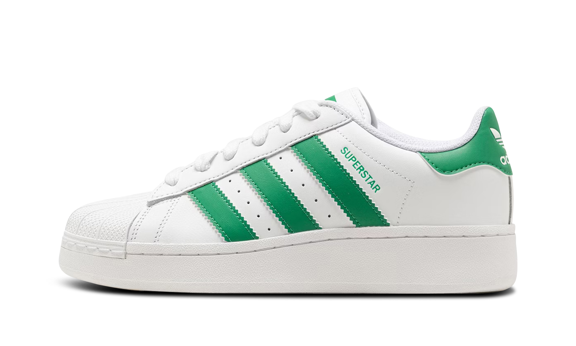 The Superstar shoe features a classic design, making it a versatile and timeless addition to any sneaker collection.