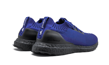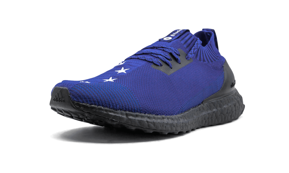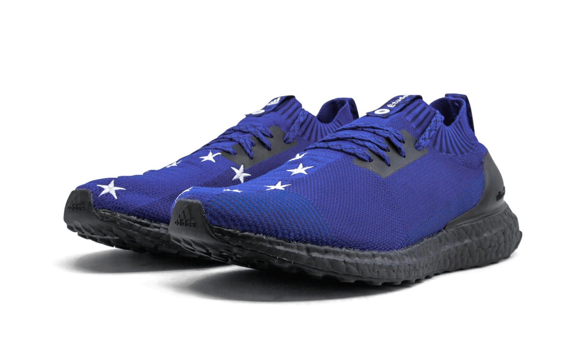 The Études x adidas UltraBoost Uncaged is a limited edition collaboration between the Parisian menswear brand and the Three Stripes. The unique colorway by Études uses the Uncaged edition of the popular Boost-cushioned running shoe and features a royal blue hue across the Primeknit upper with various textures and patterns incorporated into the weave. Black accents are also found across the shoe, including on the Boost midsole. A circular arrangement of white stars is added to the top of each toe to represent the flag of the European Union. The Études x adidas UltraBoost Uncaged released in September 2018 in limited supplies.