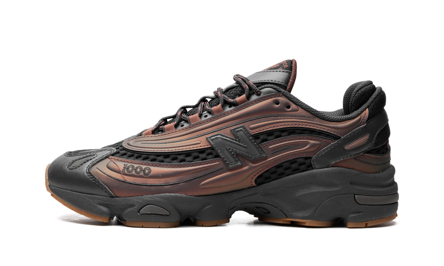 The Joe Freshgoods x New Balance 1000 “Black Ice” is a collaboration by the Chicago-based sneaker designer and New Balance on the retro shoe. Debuted in 1998, the New Balance 1000 was brought back by New Balance in 2024, and collaborated on by Joe Freshgoods in April 2024 as part of the model’s reintroduction. The shoe has a retro yet contemporary vibe, and features a black open-mesh base with synthetic metallic copper and purple overlays. Classic “N” branding is found on the sides, while “JFG” (for Joe Freshgoods) appears on the lateral forefoot. Release date: April 19, 2024