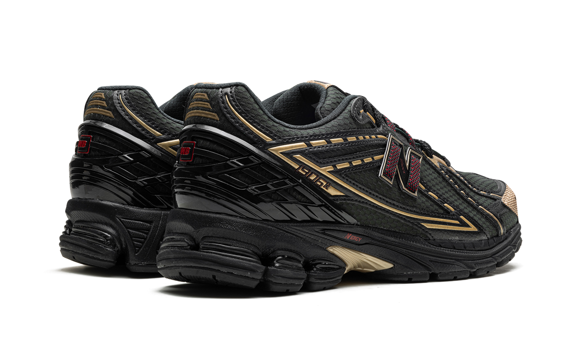 The Kith x New Balance 1906R “Black” is one of two colorways of the popular shoe co-designed by Ronnie Fieg and New Balance. The New Balance 1906R “Black” features a black open-mesh construction with metallic gold synthetic leather overlays. A maroon and gold “N” logo can be found on the sides, while a glossy black molded TPU overlay “cage” provides support on the heel. “NB” and “Kith” branding can be seen on the tongue and on the sockliner. An ACTEVA LITE midsole with New Balance’s comfortable ABZORB and SBS cushioning completes the look. Release date: March 11, 2024