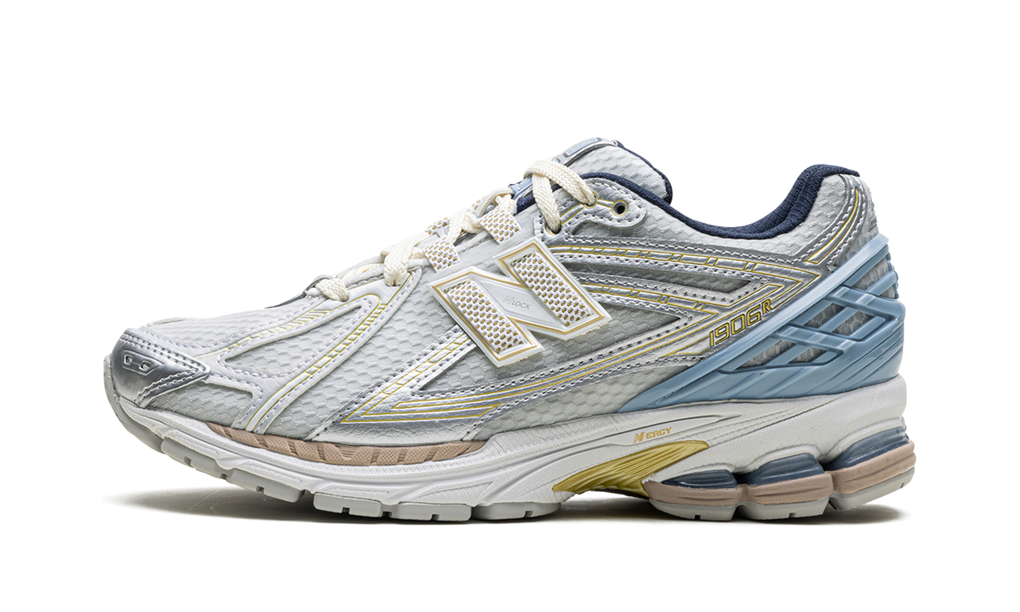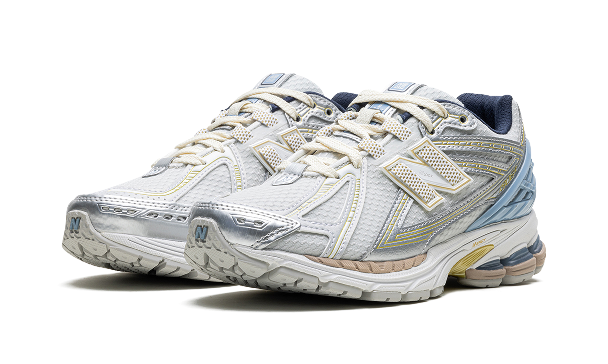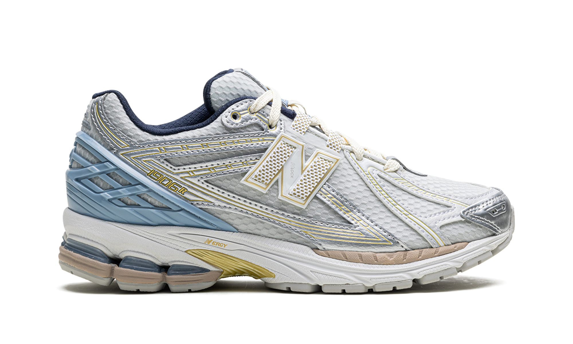 The Kith x New Balance 1906R “White” is one of two colorways of the popular shoe co-designed by Ronnie Fieg and New Balance in 2024. The “White” colorway features a breathable white open-mesh construction with synthetic overlays in a metallic silver finish with gold accents. A white and gold “N” logo can be found on the sides, while a pastel blue molded TPU overlay “cage” provides support on the heel. “NB” and “Kith” branding can be seen on the tongue and on the sockliner. Underfoot, an ACTEVA LITE midsole with New Balance’s comfortable ABZORB and SBS cushioning completes the look. Release date: March 11, 2024