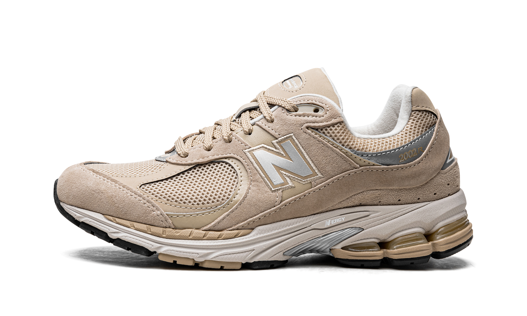 The New Balance 2002R “Beige” is another versatile colorway of the retro performance running shoe that is a welcomed addition to anyone’s closet. The “Beige” New Balance 2002R features a beige mesh base with tonal suede and leather overlays throughout its design. A contrasting grey “N” logo can be found on either side of the shoe. “2002R” detailing appears on the lateral side of the heel on a silver leather panel while “NB” and “New Balance” branding is found on the heel and tongue, respectively. The shoe’s design is rounded into form with a beige and white foam midsole.