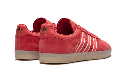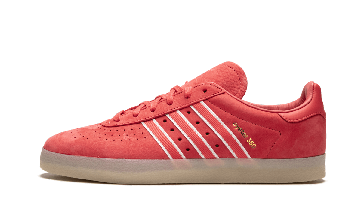 The Oyster Holdings x adidas 350 comes from a perfectly-paired partnership between the sneaker brand and travel-inspired fashion label. The Los-Angeles based label makes its worldly presence known on the adidas lifestyle sneaker with a tonal aesthetic. Dressed in red, the upper is created with smooth leather and textile Three-Stripes. Tonal branding hits the tongue while the adidas 350 and trefoil logos get fancy in gold. The Oyster Holdings x adidas 350 is finished with a gum outsole with a grooved chevron bottom.