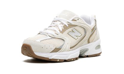 The New Balance 530 “Linen/Stoneware” is a colorway of the retro running shoe with a neutral-colored look. The shoe at hand features a cream-colored mesh construction with tonal suede overlays and brown leather overlays. A Sea Salt-colored “N” logo appears on the lateral side, while a grey “530” logo can be found on the lateral side of the quarter panel. A white midsole and brown outsole complete the look.