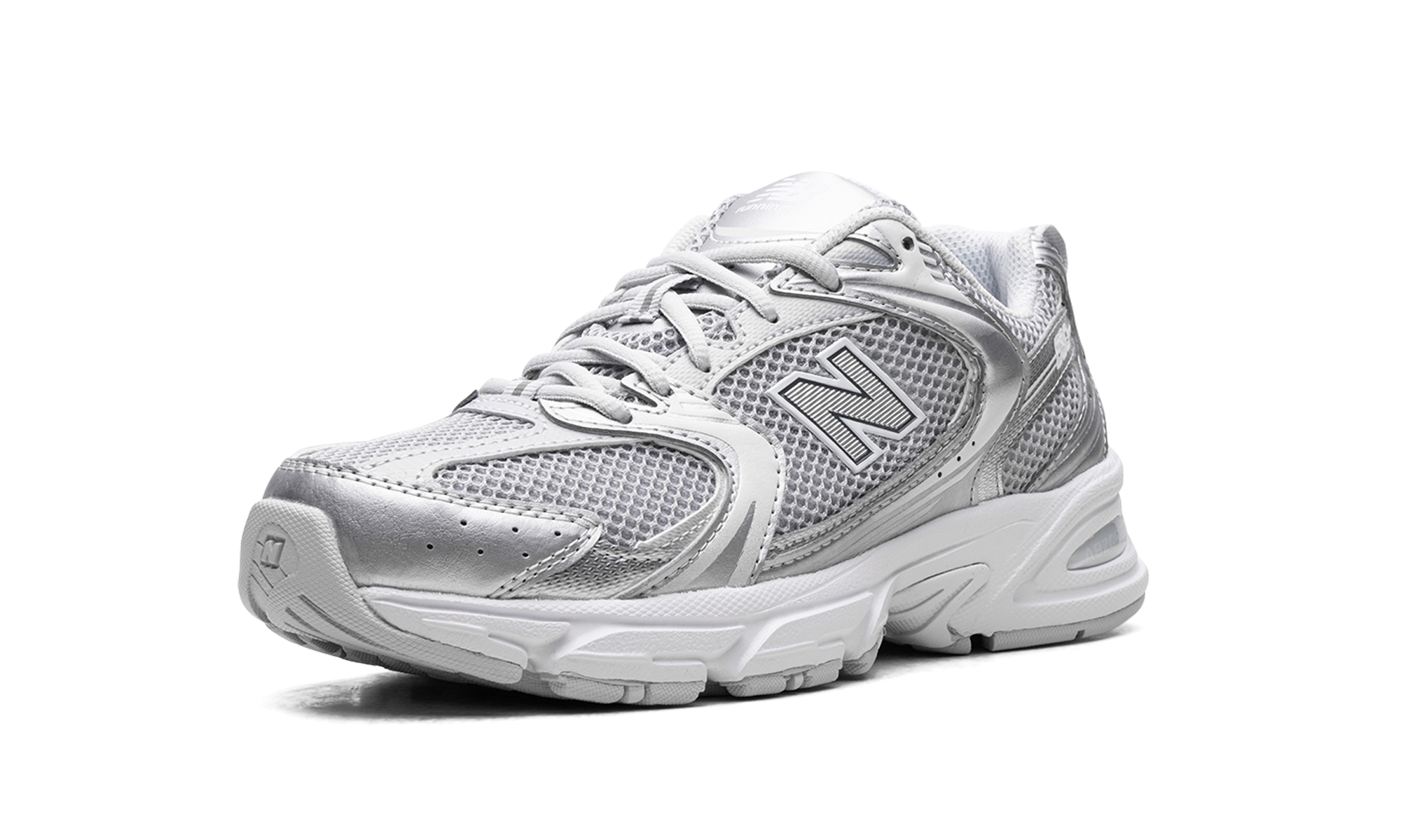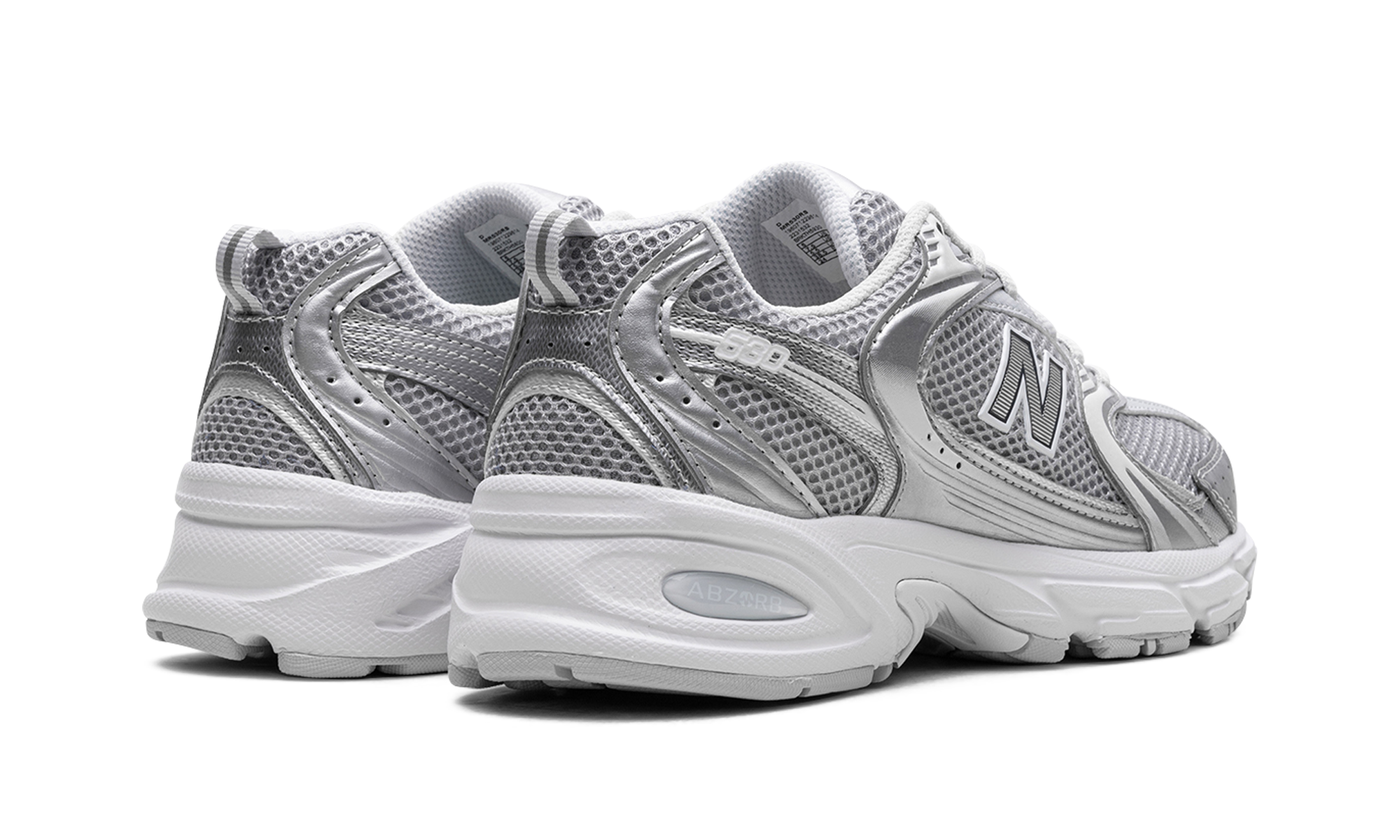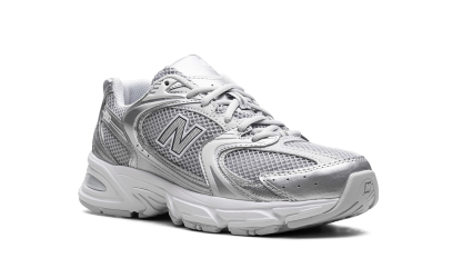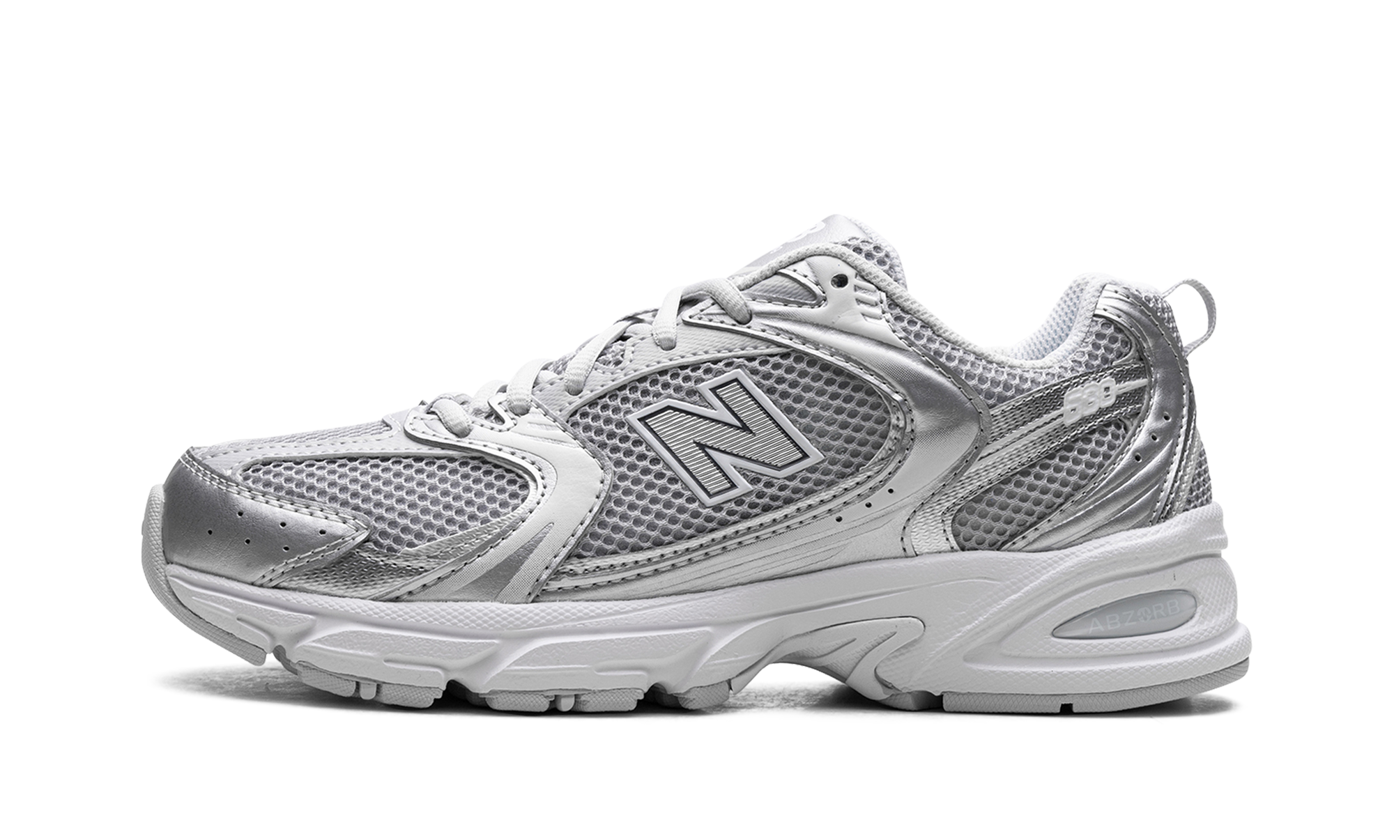 Blend everyday style with modern tech in the New Balance 530 "Moonbeam Silver Metallic." This unisex sneaker offers a bold, chunky silhouette with Y2K-inspired details. A knit mesh base is overlaid with a striking lattice of silver and moonbeam metallic, creating unique visual texture. Experience superior comfort with modern ABZORB cushioning, designed to absorb impact. Complete with signature New Balance branding, these sneakers deliver both style and performance.