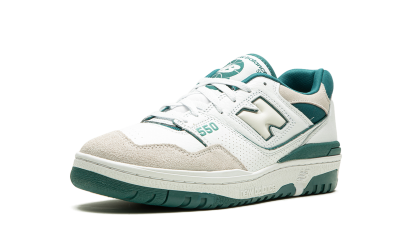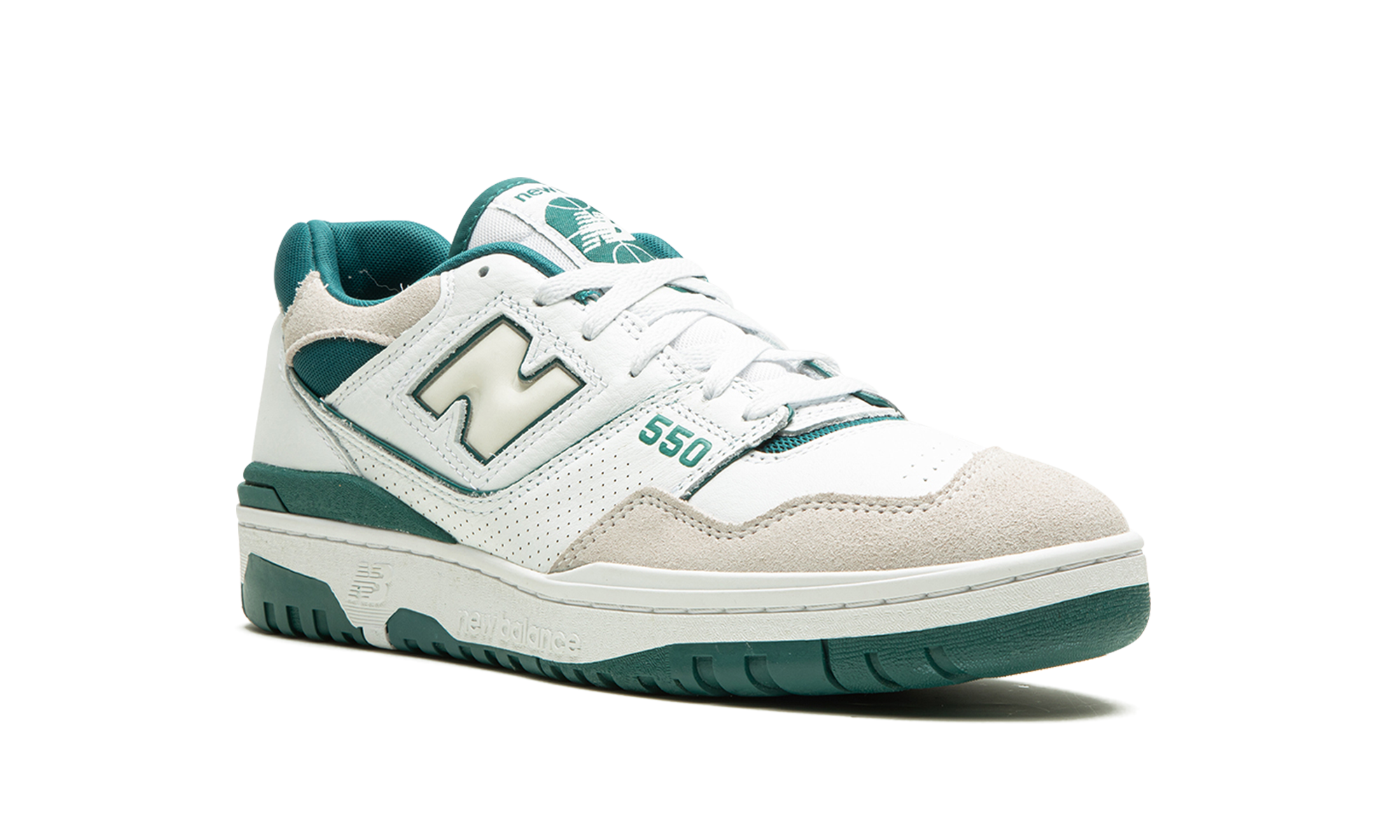The New Balance 550 "Vintage Teal" is a summertime-ready colorway of the retro basketball shoe that was released in 2023. The “Vintage Teal” gives the popular silhouette an easy-on-the-eyes makeover that’s perfect for warm weather wear. White leather appears on the shoe’s upper while a light grey suede overlay is seen on the toe. A milky white “N” logo with Vintage Teal trim appears on the side. More Vintage Teal accenting is seen on the “550” branding on the lateral side of the forefoot, the “NB” logo on the heel, and the “New Balance 550” graphic on the tongue tag. Both the mesh collar and inner lining are also finished in Vintage Teal. Underfoot, the chunky white rubber midsole is matched with a teal rubber outsole. Release date: June 21, 2023