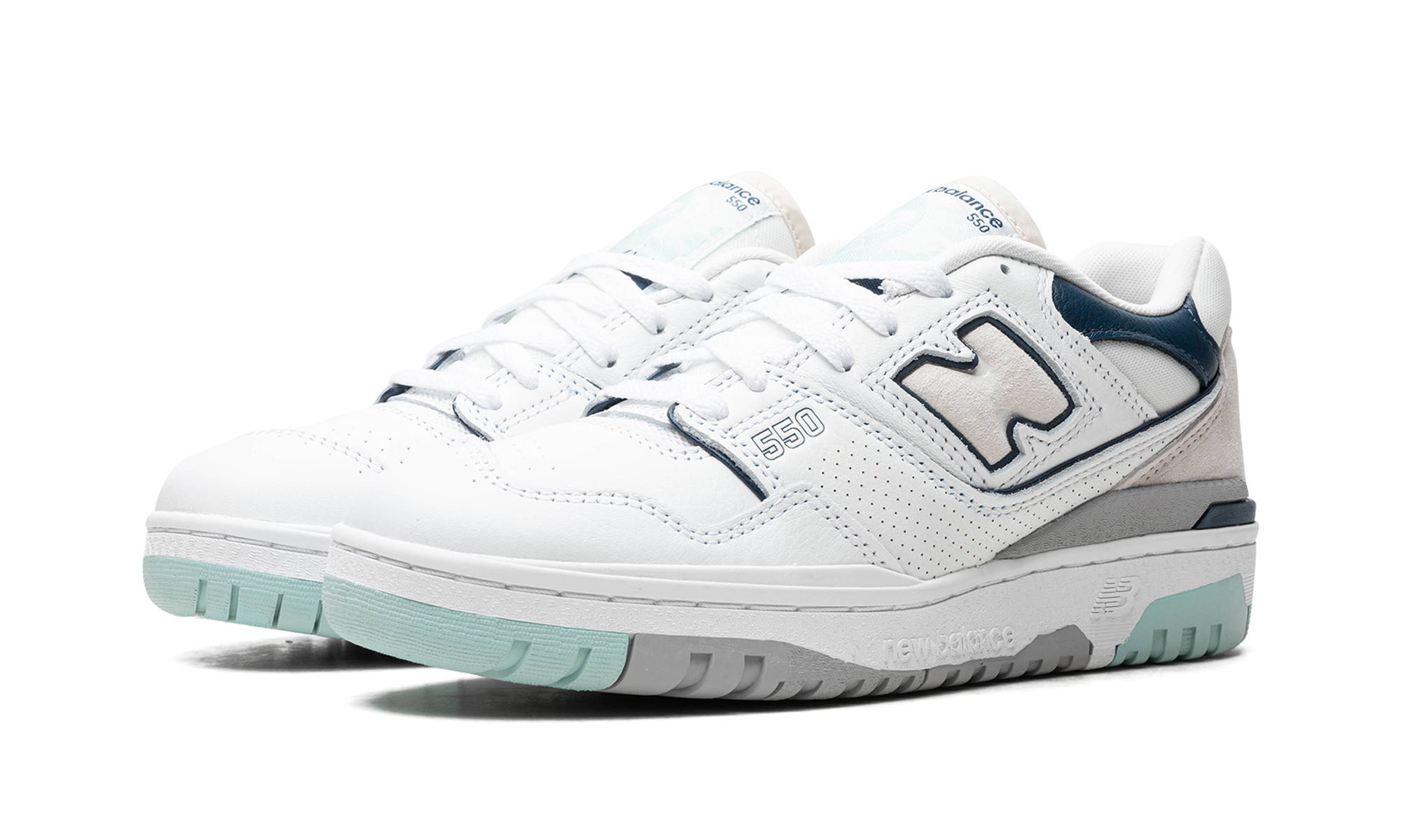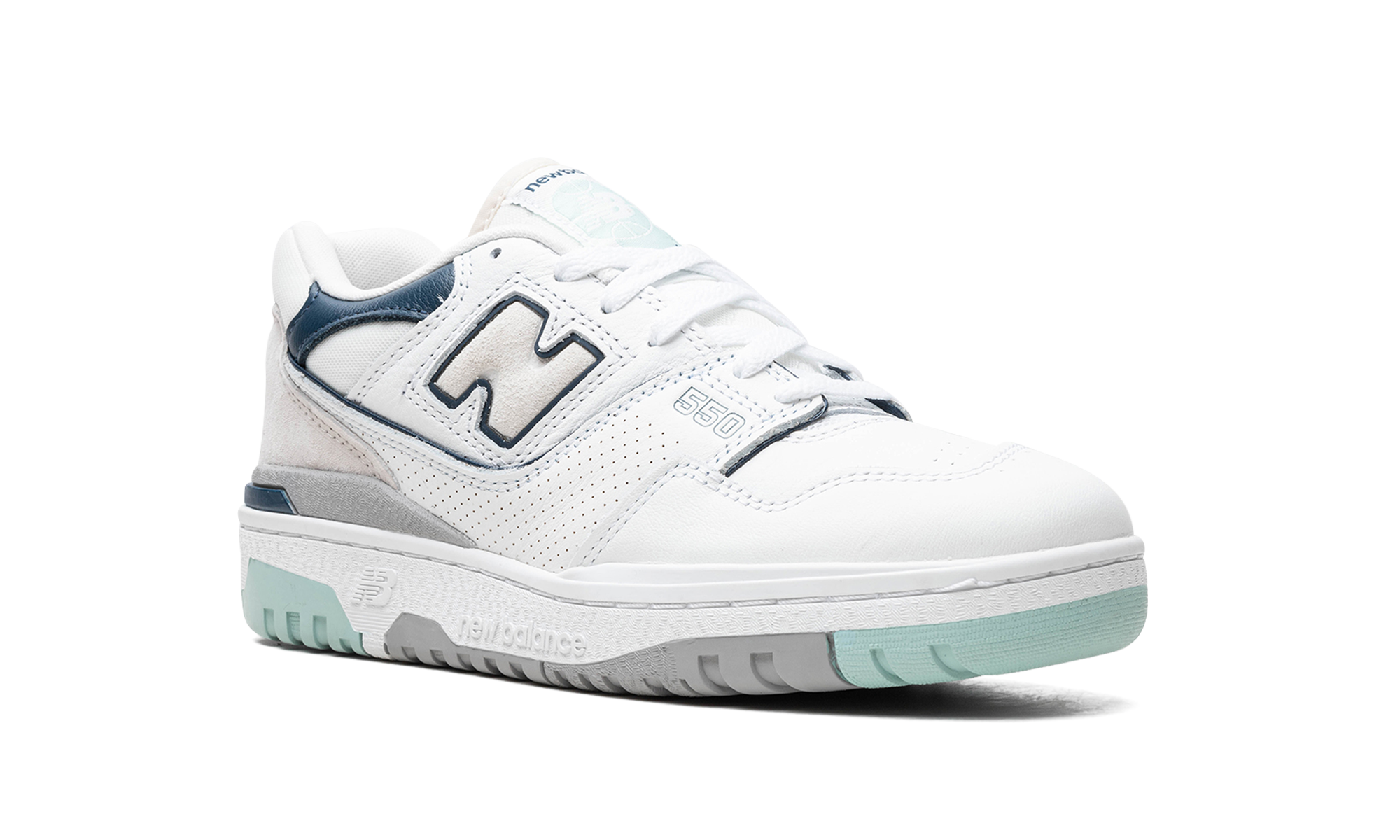 The Women’s New Balance 550 "White/Winter Fog" is a women’s-exclusive colorway of the classic basketball and casual shoe with an easy-wearing style. The upper features a white leather base with Winter Fog colored accents. A white “N” logo with navy trim appears on the sides while black outline “550” detailing is seen on the forefoot. More navy accenting is seen on the leather overlay on the collar. “New Balance” branding is located on the heel and tongue. Release date: September 20, 2023