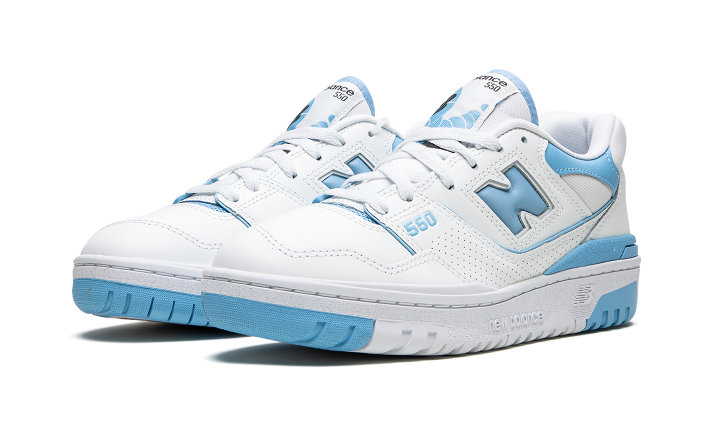 The Women’s New Balance 550 “UNC” is a women’s-exclusive version of the vintage basketball shoe in a colorway inspired by the North Carolina Tar Heels college basketball team’s uniform colors. The “UNC,” in spite of its nickname, has no ties to the Tar Heels, but nonetheless draws favorably from the popular basketball team with its white leather construction and light blue accents. Specifically, the shoe has a blue detailing in the form of an “N” logo on either side, “550” branding on its forefoot, “NB” on the heel, and “New Balance 550” detailing on the tongue. A white rubber midsole is paired with a white and blue outsole. Release date: January 8, 2023