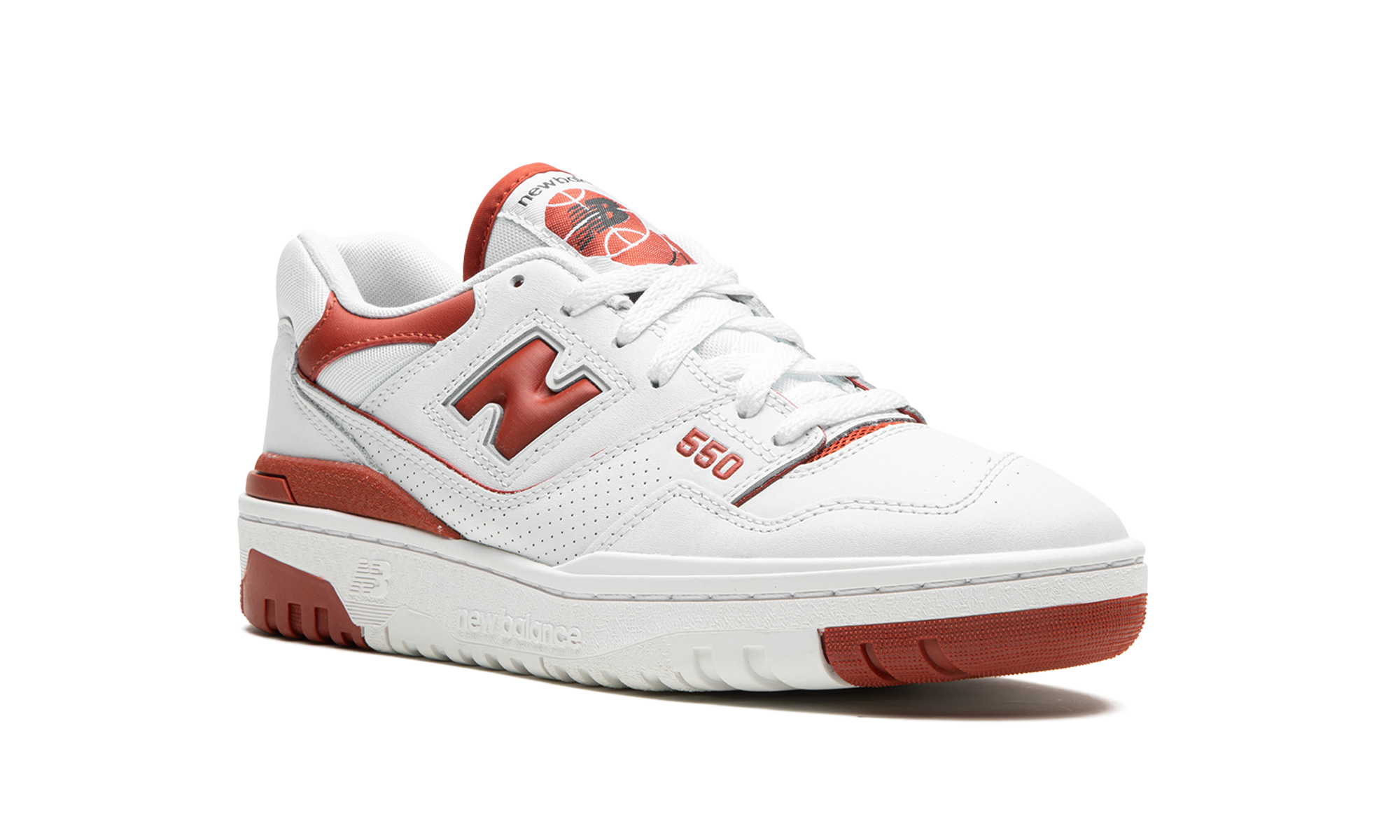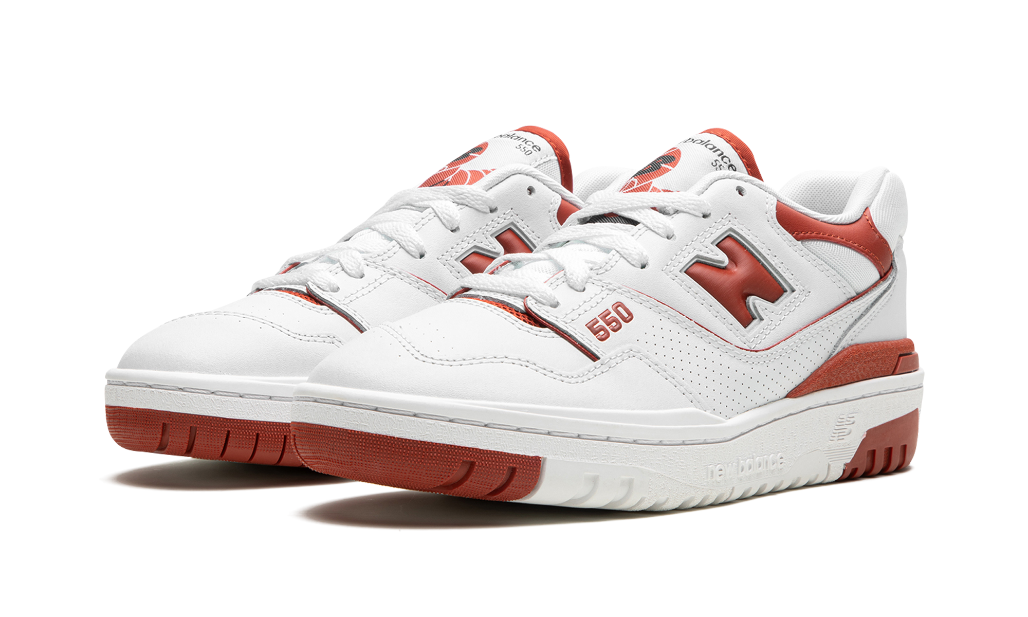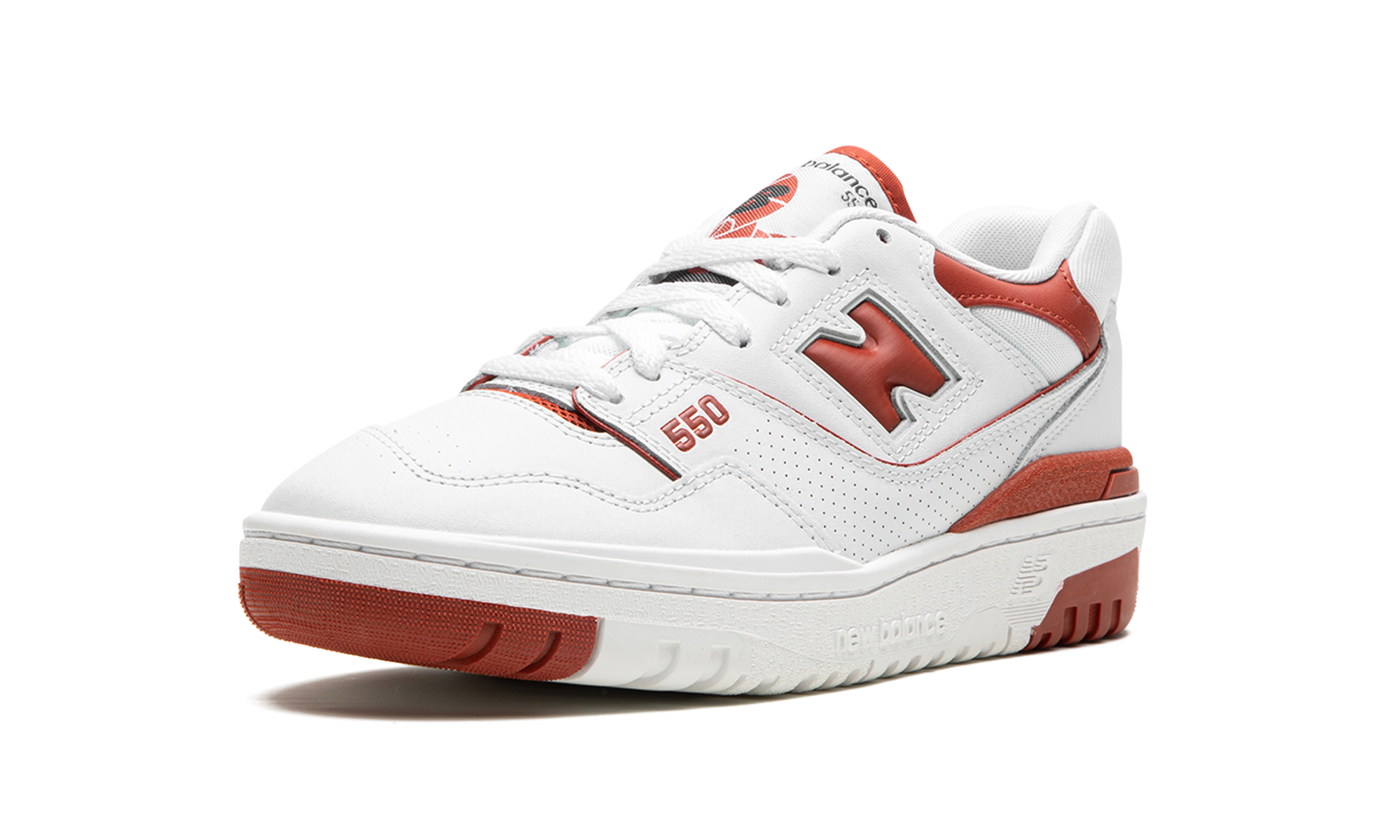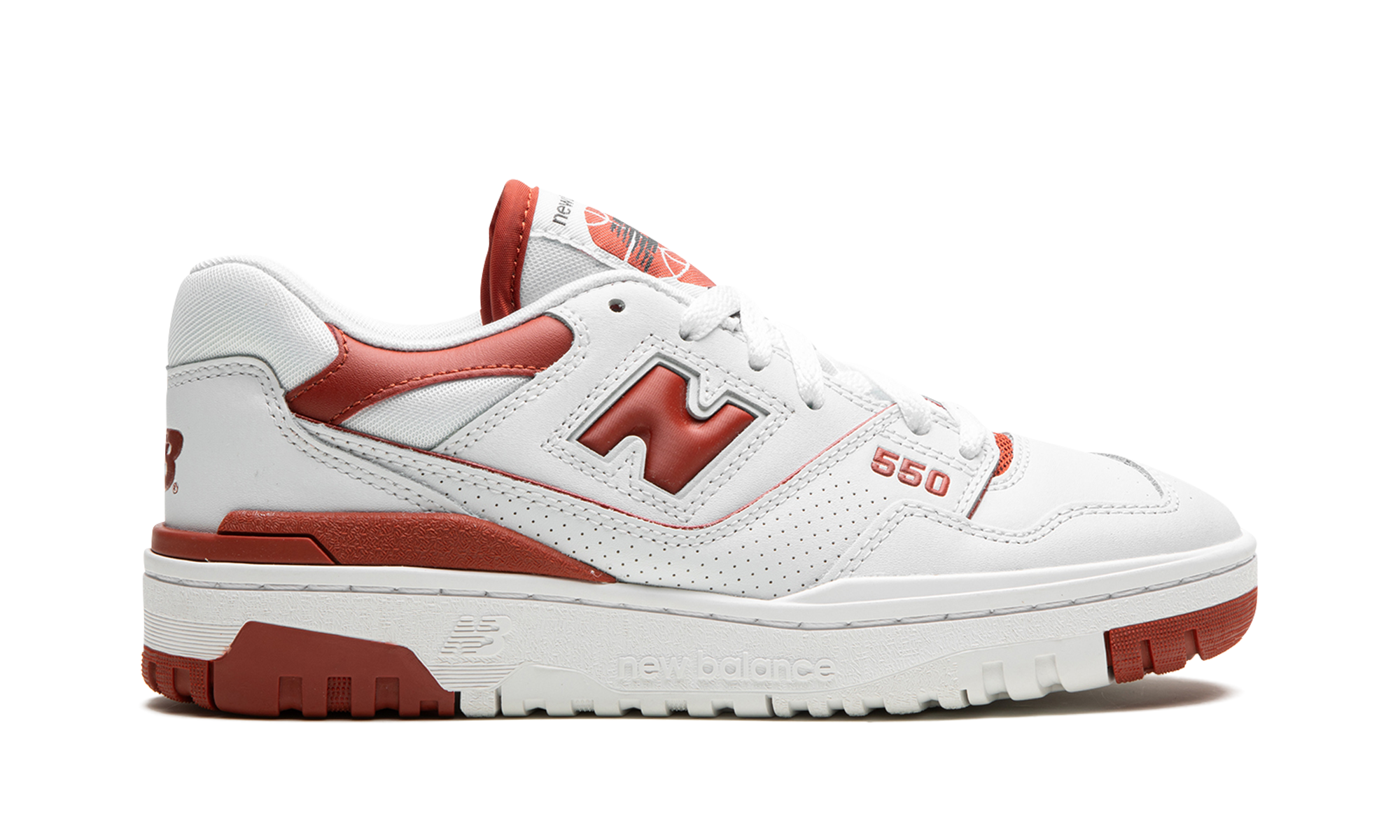 The Women’s New Balance 550 “Brick Red” is a women’s-exclusive colorway of the retro basketball and lifestyle shoe with fiery red accents. The “Brick Red” features a white leather construction with smooth and dotted leather on various panels on the shoe. A Brick Red “N” logo appears on the side. Red “550” detailing is embroidered on the lateral side of the forefoot and red “NB” branding is seen on the heel. A classic “New Balance 550” graphic appears on the tongue in red. Underfoot, the chunky white rubber midsole and Brick Red rubber outsole complete the look. Release date: June 21, 2023