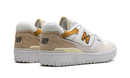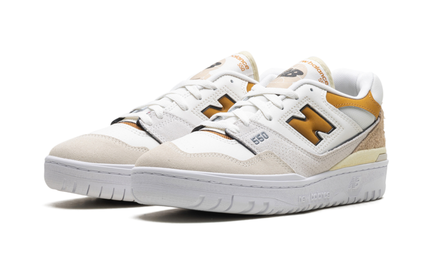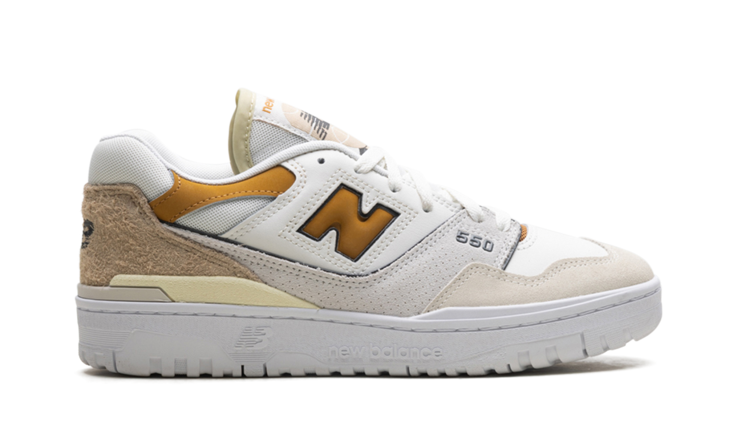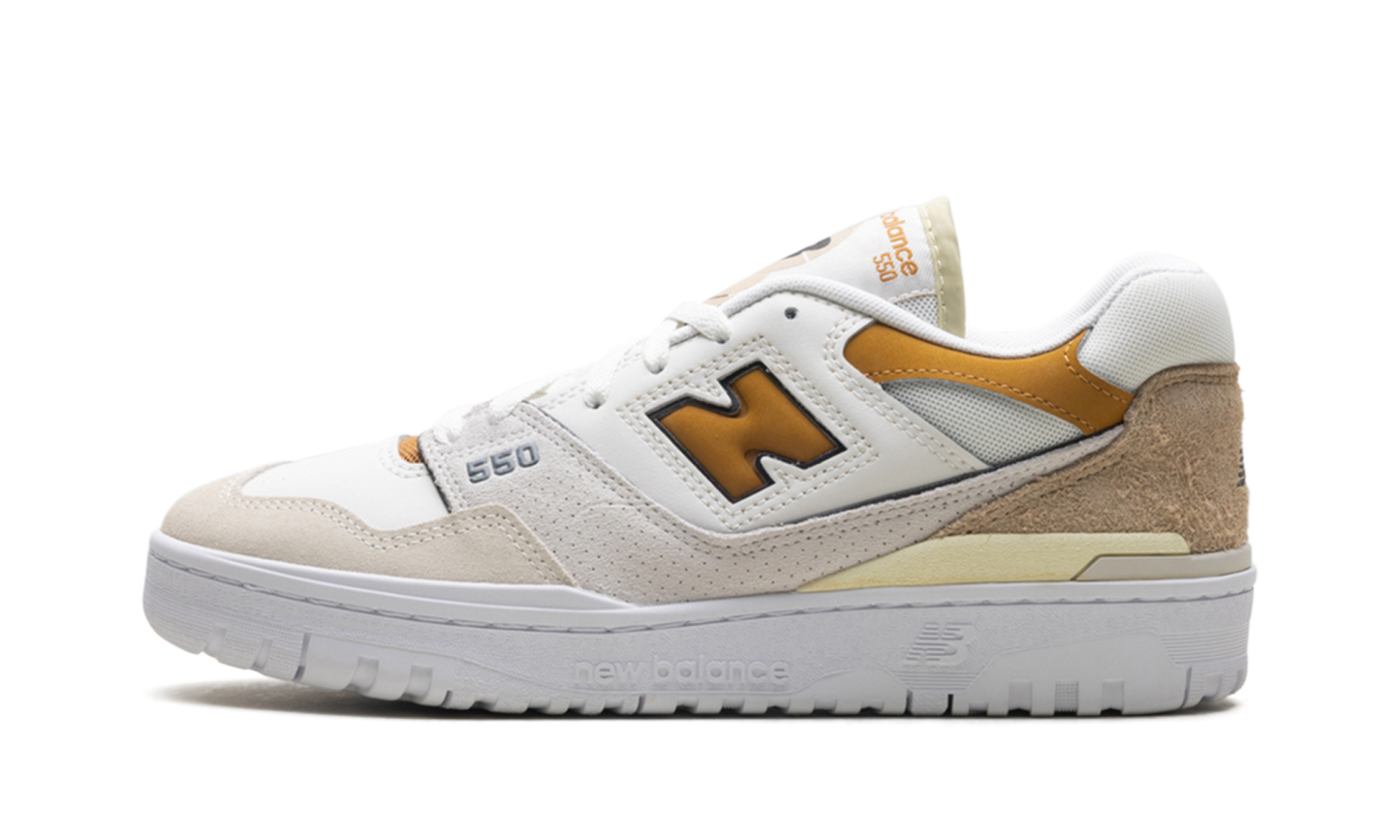 The Women’s New Balance 550 "Sea Salt/Tobacco" is a women’s-exclusive colorway of the retro basketball shoe with orange accents. Debuted in the late 1980s and brought back from the archives by Aimé Leon Dore in 2020, the New Balance 550 is beloved by sneaker collectors for its timeless look. Here, the shoe features a white leather base with Sea Salt colored suede overlays on the toe and perforated suede overlays on the forefoot, mid-panel, and heel. A Tobacco “N” logo appears on the sides while orange “550” detailing is seen on the forefoot. More orange “New Balance” branding is located on the heel and tongue. Release date: September 20, 2023