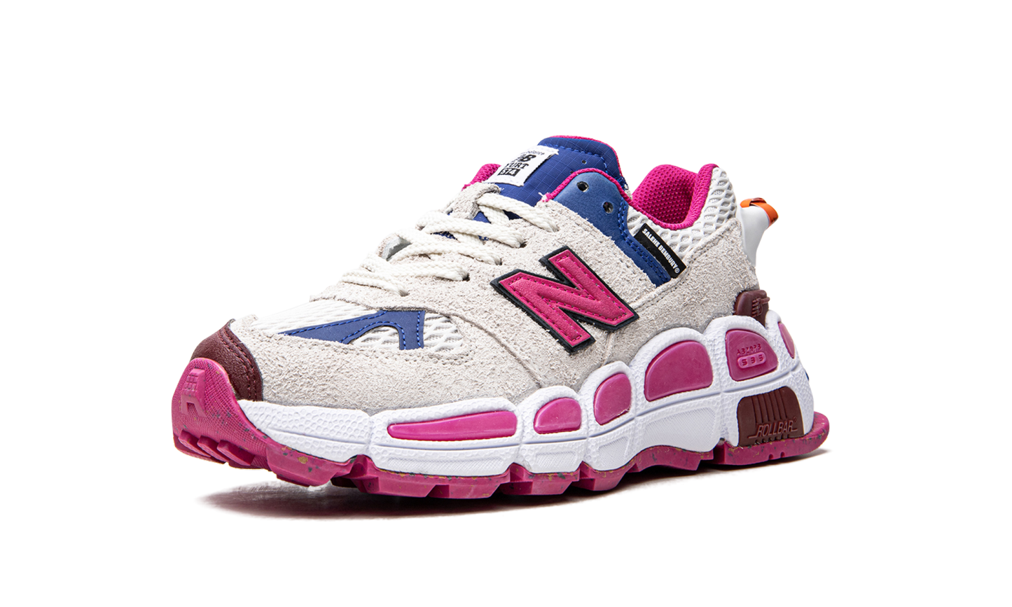 The Salehe Bembury x New Balance 574 Yurt “Pink” is a collaboration of NB heritage with Salehe Bembury that showcases his love and appreciation for the outdoors. This durable sneaker features tooling on the midsole which allows it to become a trail shoe while still holding onto New Balance signature aesthetic. The all-white suede and mesh upper is accented with pink, blue and burgundy. Adding to the model’s uniqueness and trail-hiking vibe, a rescue whistle is attached to the shoe at the heel.