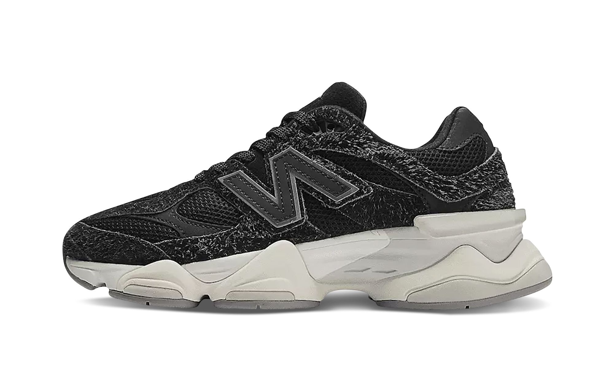 The New Balance 9060 "Black Suede" is a colorway of the popular sneaker by the Boston footwear cbrand that features hairy black suede accenting. Just as its name suggests, the “Black Suede” New Balance 9060 incorporates fuzzy black suede detailing on its design, specifically on its overlays on top of the black mesh base. An oversized black “N” logo appears on either side. A cream, light grey, and white chunky rubber midsole round out the look. Release date: July 26, 2023