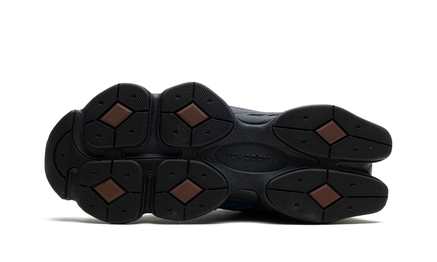 The New Balance 9060 "Blue Agate" is a colorway of the sneaker with a retro-yet-modern look with eye-catching blue details. The 9060 features an oversized, chunky rubber sole that gives the shoe a contemporary look. Here, the “Blue Agate” colorway is constructed with a black mesh base contrasted with rich blue leather overlays. An oversized silver “N” logo appears on the mid-panel. Grey and dark brown detailing is found throughout the upper and midsole. As mentioned, the shoe is mounted on an oversized, dual-density midsole featuring ABZORB and SBS cushioning.