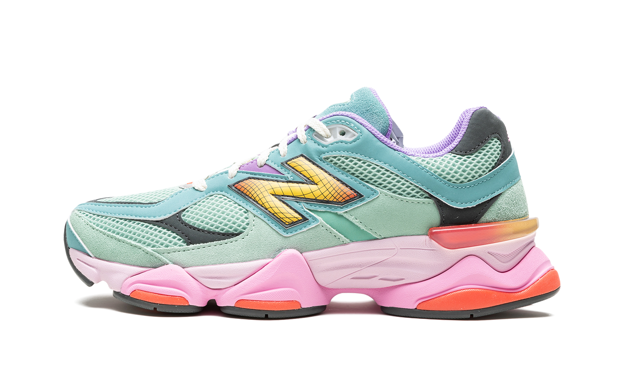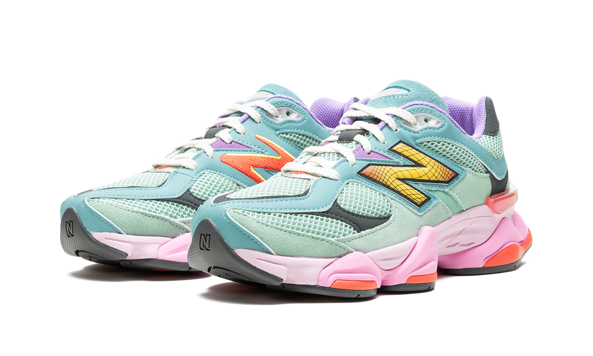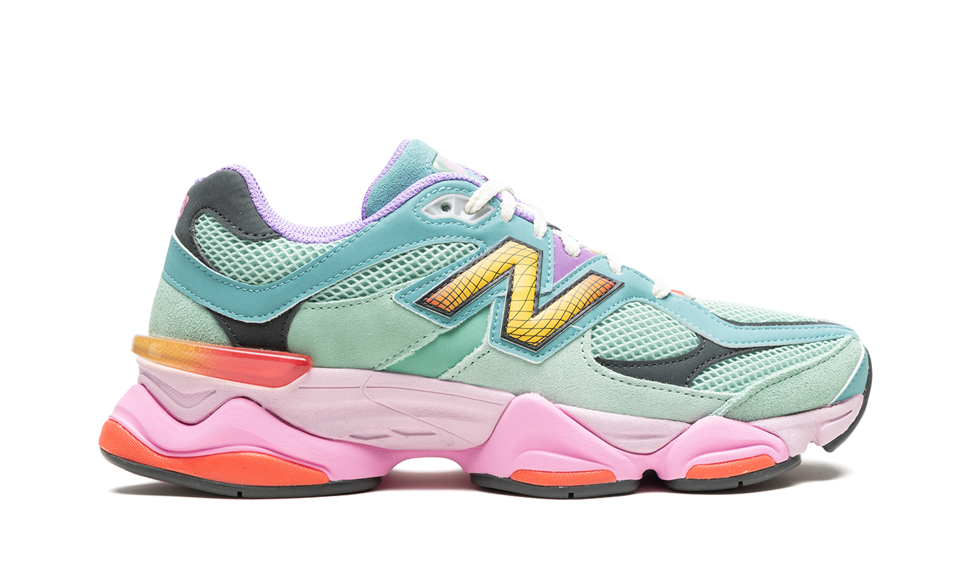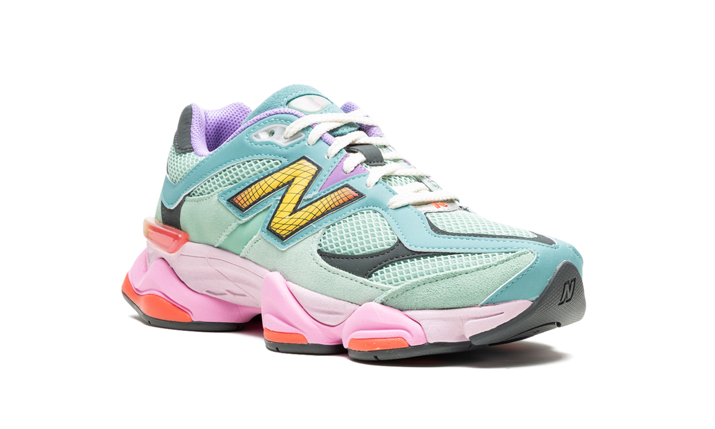 The New Balance 9060 “Multicolor” is an attention-grabbing colorway of the lifestyle sneaker by the Boston based footwear brand. The 9060 was introduced by Chicago based streetwear and footwear designer Joe Freshgoods as part of his “Conversations Among Us” project, and then was released in a series of colorways thereafter, including this “Multicolor” makeup. The shoe features a Sage Leaf mesh base with tonal suede overlays throughout. An oversized Neo Flame “N” logo is found on the side. Pink “NB” branding is embroidered on the heel and “NB 9060” detailing is located on the tongue. Underfoot, the chunky midsole features dark and light shades of pink to complete the look. Release date: March 31, 2023