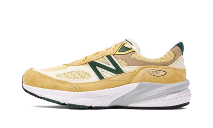 The New Balance 990v6 "Made In USA - Pale Yellow" is a colorway of the lifestyle shoe with a yellow-based design. The upper features a Pale Yellow mesh construction with yellow pigskin suede and nubuck overlays. A green “N” logo can be seen on either side of the shoe. Other green accents appear on the top eyelet overlay and on the heel. “990” branding is found on the lateral side of the heel while “New Balance 990v6” detailing is located on the tongue. New Balance combines its comfortable ABZORB cushioning with FuelCell and ENCAP technology in the shoe’s sizable midsole. Release date: August 31, 2023