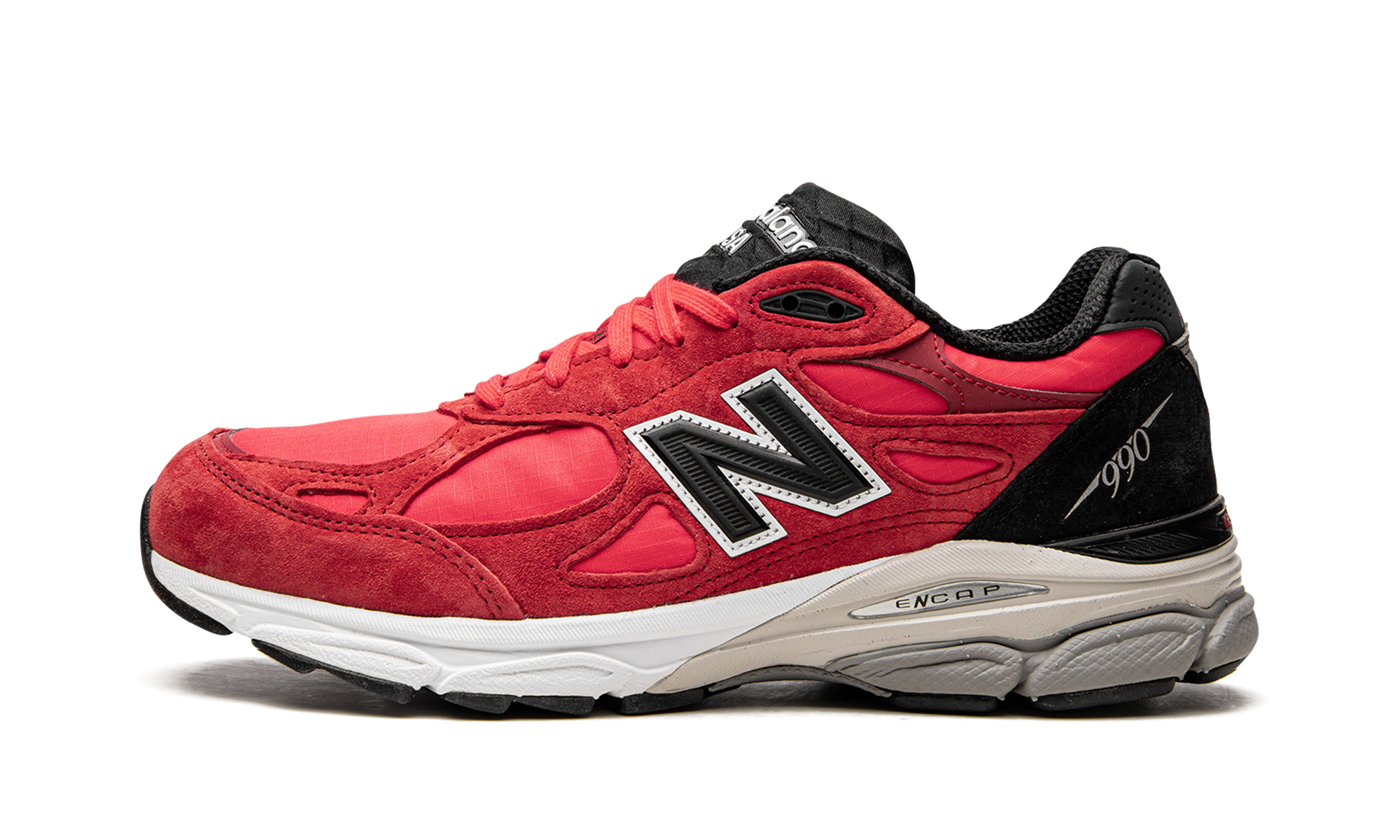 The New Balance 990 V3 “Red/Black” is a predominately black-and-red colorway of the premium lifestyle shoe. New Balance’s 990 V3 is one of the most popular models from the Boston based footwear and lifestyle brand’s series of Made in the USA shoes, and it’s easy to see why on the “Red/Black.” The upper features a red textile base with tonal suede overlays throughout the design. A contrasting black “N” logo appears on both sides. Black suede is found on the heel. The shoe’s ENCAP cushioned midsole provides all-day comfort.