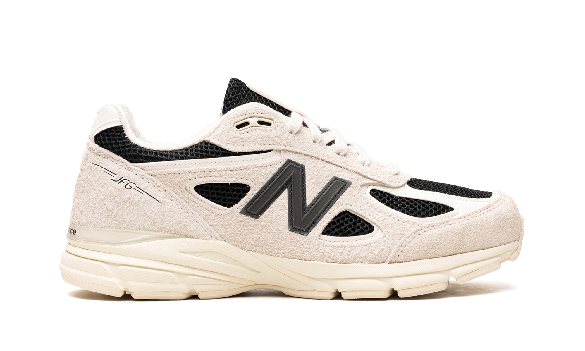 The Joe Freshgoods x New Balance 990v4 "Intro" is a collaboration by the Chicago-based fashion and footwear designer on a colorway of the classic shoe from his “1998” collection. Inspired by magazine campaigns, movies, and other forms of media from hip-hop culture of the late ‘90s, the “Intro” New Balance 990v4 by Joe Freshgoods is said to be influenced by the Hype Williams’ directed movie “Belly” from 1998, which featured Nas, DMX, and Method Man. The upper has a black mesh base and shaggy grey suede overlays. A “1998” logo appears on the heel tab, while a “JFG” logo can be found on the lateral heel. Additional Joe Freshgoods branding appears on the insole of the right shoe. Classic New Balance 990v4 branding elements can be seen on the tongue. Release date: December 15, 2023
