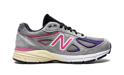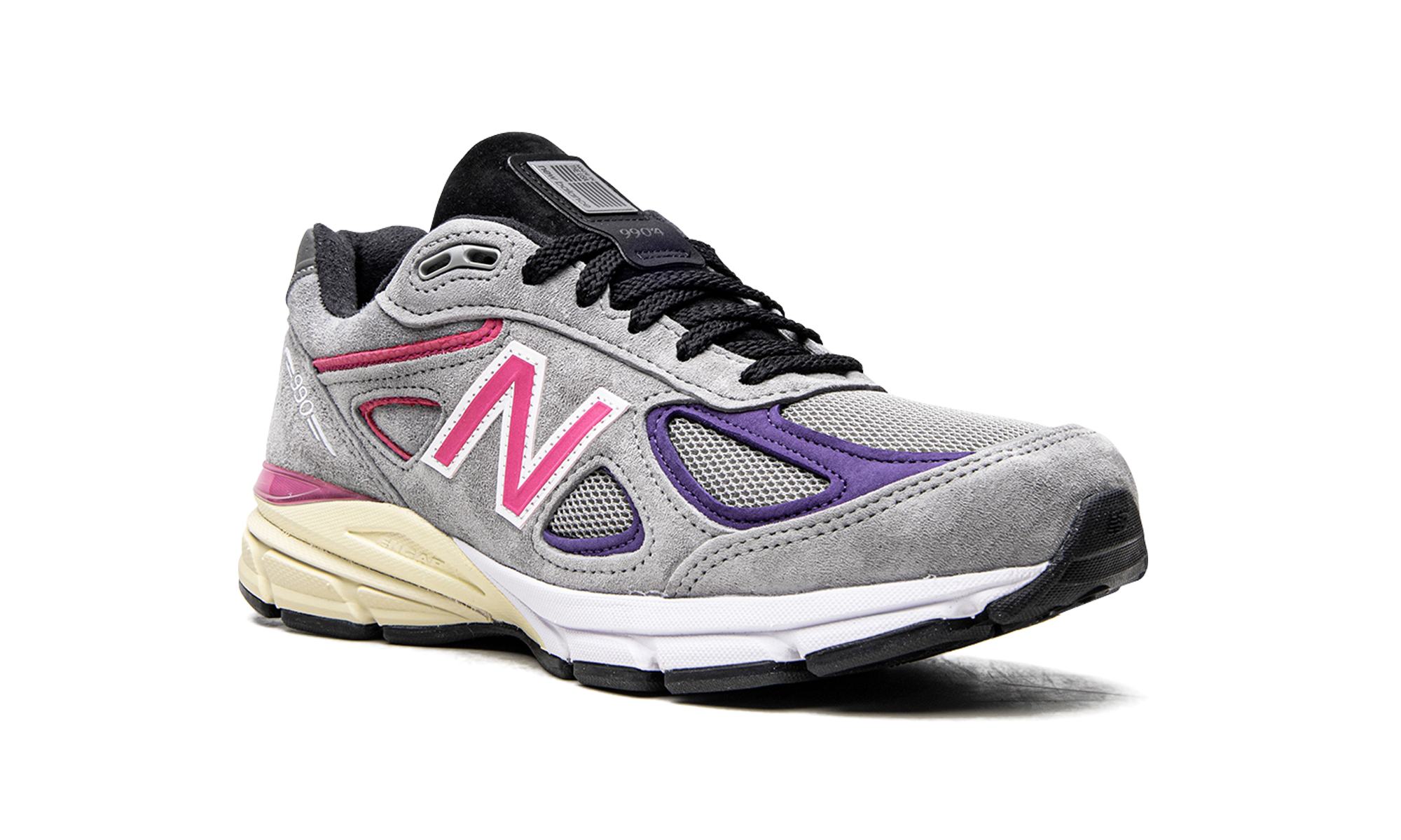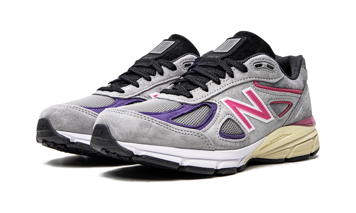The Kith x United Arrows and Sons x New Balance 990V4 is a collaboration between the Japanese contemporary fashion brand, Kith, and New Balance that honors both Kith’s 10-year anniversary and the 40-year anniversary of the 990. The shoe’s grey, black, purple, and pink color scheme is inspired by Kith, United Arrows, and New Balance’s previous collaboration from 2018 on the New Balance 997. The shoe features a grey mesh construction with grey suede overlays. Contrasting pink and purple accents are found throughout the design of the upper. A pink “N” logo with white trim appears on both sides and “KXTH” branding is found on the pink leather overlay on the heel. Additional branding includes white “990” insignia on the lateral side of the heel, and classic “New Balance” detailing on the back of the midsole and on the tongue tag. The shoe rides on a two-tone cream and white midsole that houses New Balance’s ENCAP cushioning technology. Release date: June 15, 2022