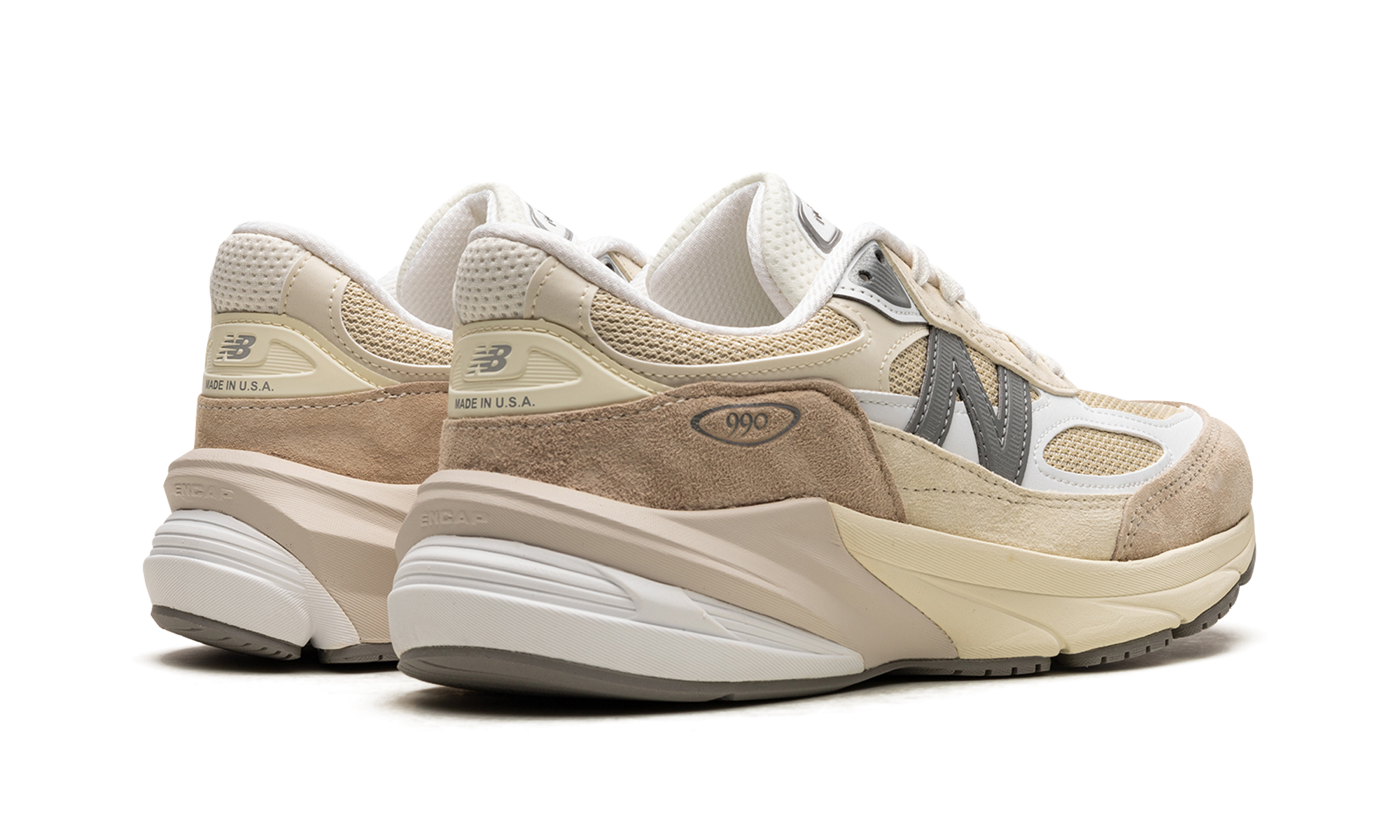 The New Balance 990v6 "Made in USA - Cream" is a versatile and neutral based colorway of the sixth variation of the popular sneaker. Debuted in 2023, the New Balance 990v6 was released in multiple colorways, including in “Cream” as seen here. The shoe features a cream-colored mesh base with white leather overlays on the toe and tonal leather and suede overlays on the mid-panel and eyelets, respectively. A grey “N” logo appears on both sides of the shoe while classic “New Balance” branding is seen on the tongue. New Balance features its signature ABZORB cushioning with FuelCell and ENCAP technology in the shoe’s sizable midsole. Release date: July 27, 2023