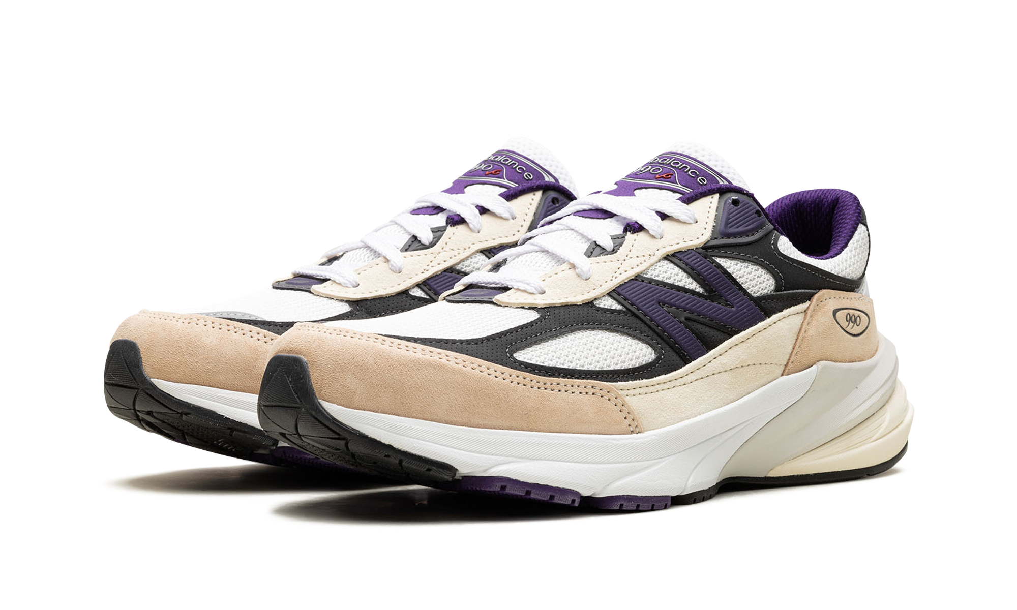 The New Balance 990v6 Made in USA “White/Black/Plum” is a colorway of the casual sneaker by the Boston-based shoe brand with a head-turning look. The shoe’s upper is complete with a white mesh construction and black leather and tan suede overlays. An Plum “N” logo can be found on both sides of the shoe. Signature “990” branding appears on the lateral side of the heel while “New Balance 990 v6” detailing can be found on the tongue. New Balance’s ABZORB cushioning with FuelCell and ENCAP technology is embedded in the shoe’s midsole.