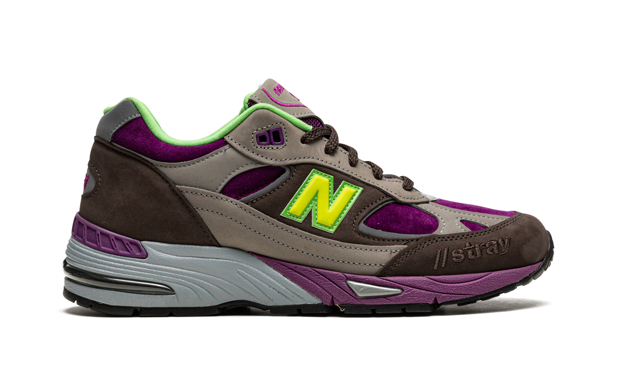 The Stray Rats x New Balance 991 is a lifestyle shoe that leans on the graphic-heavy USA clothing brand, Stray Rats, for design inspiration. Outfitted in a mix of velvet, suede, and leather, the classic silhouette dons reflective details hitting the toe box, lower tongue, ankle collar and heel tab. The color scheme includes brown, purple, tan, and dark brown, along with a bright green hue lining the interior and outlining the yellow “N” logo on side. An embroidery of the Stray Rats branding is seen on the forefoot. A grayish-blue-and-purple midsole and black rubber outsole to complete the look.