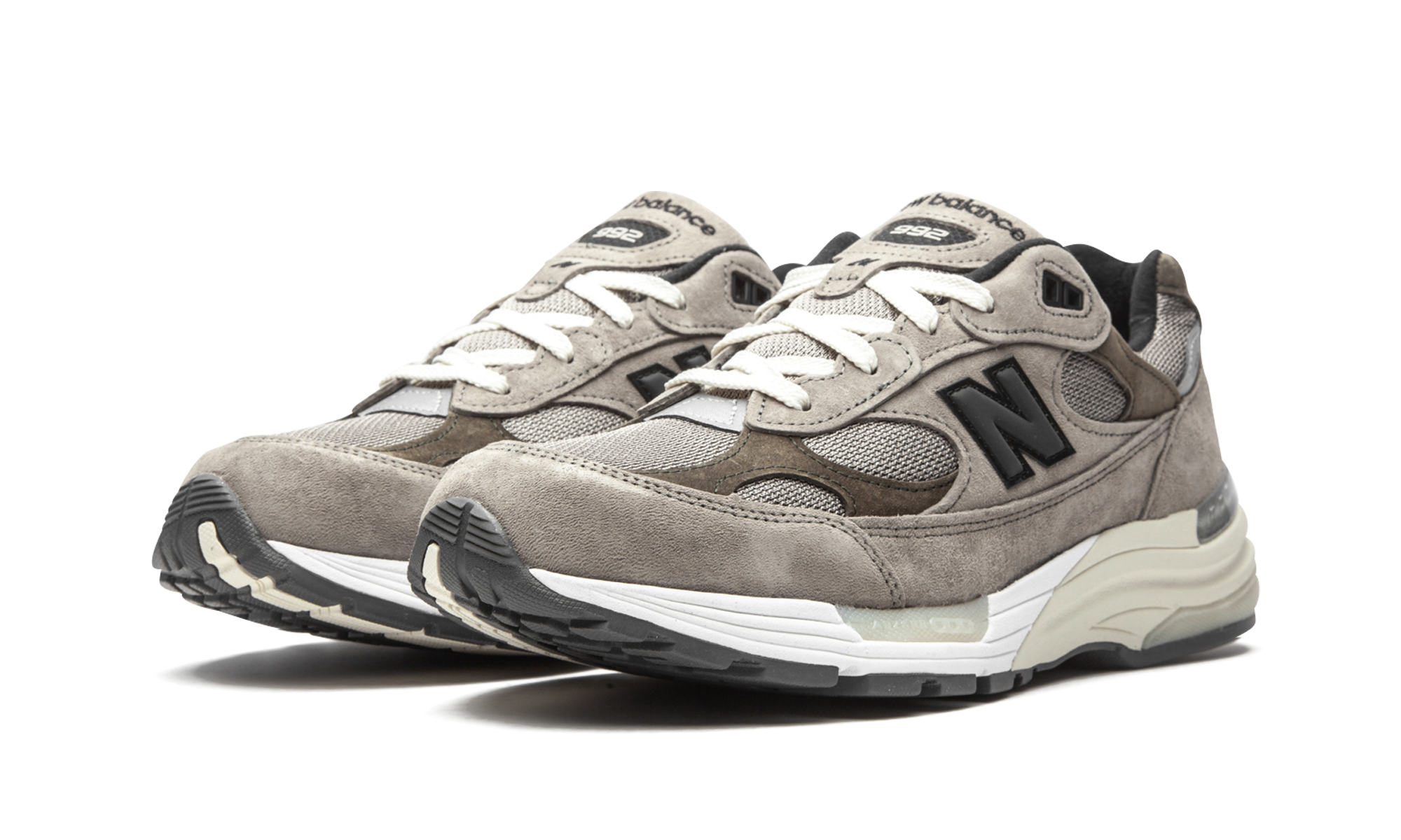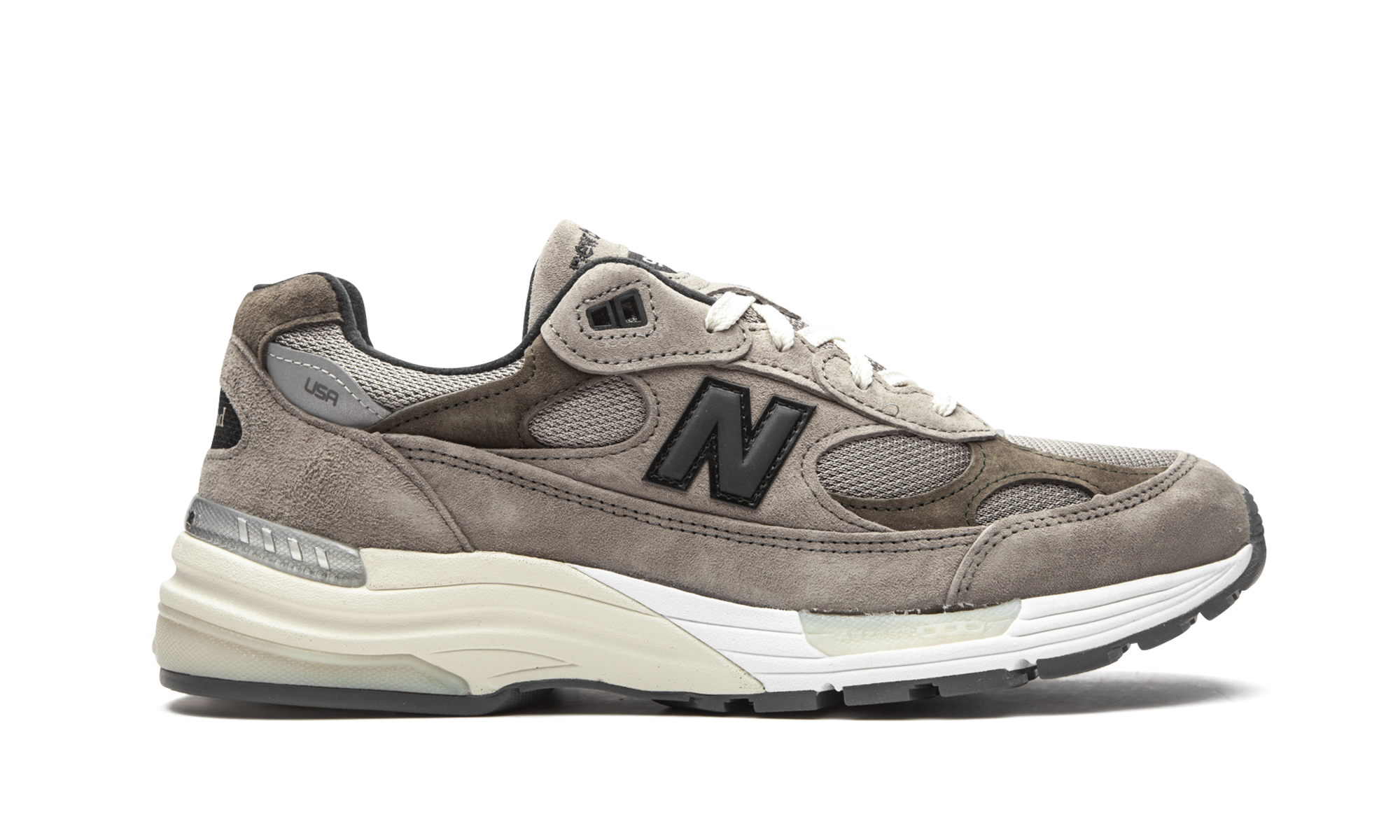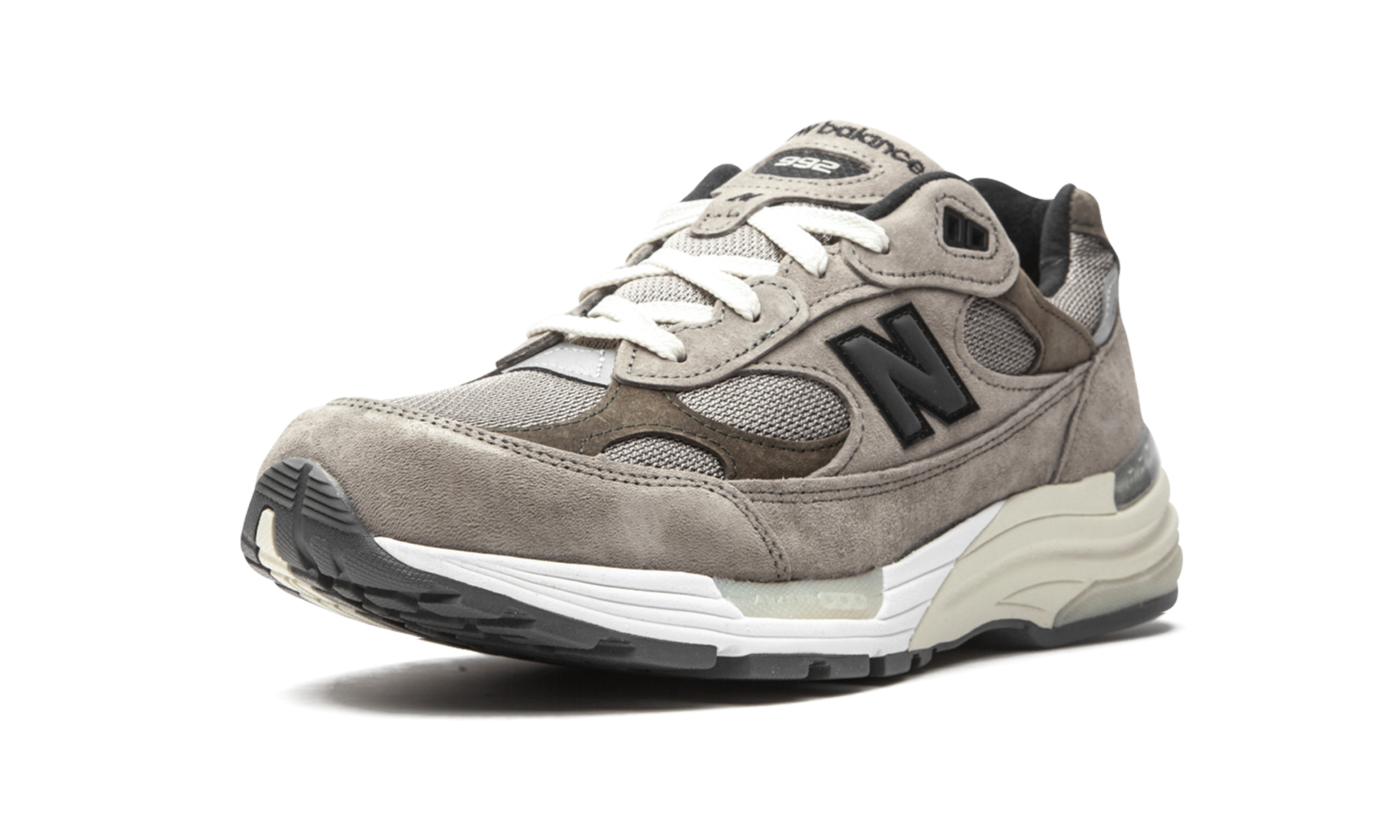 The JJJJound x New Balance 992 is a sought-after collaboration between the Montreal based design studio and New Balance on the popular lifestyle silhouette. One of the most unlikely designs to be catapulted into sneaker stardom in 2020, the New Balance 992 was the subject of many desirable colorways and collaborations throughout the year, including JJJJound’s minimalist take seen here. Tan colored mesh detailing forms the base of the upper and is visible on the toe, forefoot, and collar. Buttery tonal suede overlays are located on the eyelets, mid-panel, and heel-to-toe mudguard above the split white and beige midsole. A washed black reflective “N” emblem can be found on either side and JJJJound branding is located on the heel. Additional features include chocolate brown suede overlays on the forefoot, collar, and heel and a mini “USA” logo on the grey leather patch on the collar. New Balance’s ABZORB cushioning technology is embedded within the midsole and provides the wearer with a soft ride for all-day use. Release date: August 7, 2020.