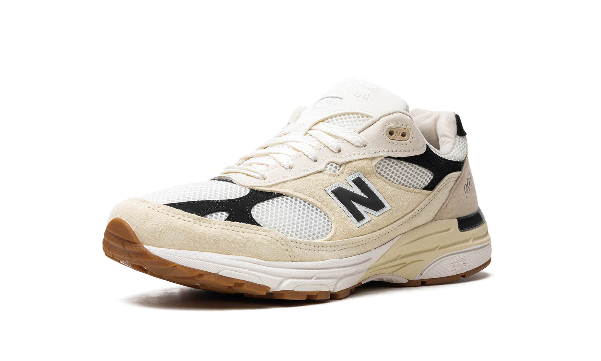 The New Balance 993 Made in USA “Sea Salt/Black” is a neutral-based colorway of the lifestyle shoe from New Balance’s “Made in USA” line. The New Balance “Made in USA” collection is a popular lineup of sneakers overseen by Aimé Leon Dore founder and lead designer Teddy Santis. The “Made in USA - Sea Salt/Black” features a white mesh base with Black and Sea Salt suede overlays. A Black “N” logo outlined in white appears on the mid-panel and silver “993” detailing is seen on the lateral side of the heel. “New Balance Made in USA” branding is embroidered on the tongue. The heel of the midsole has an aged finish.