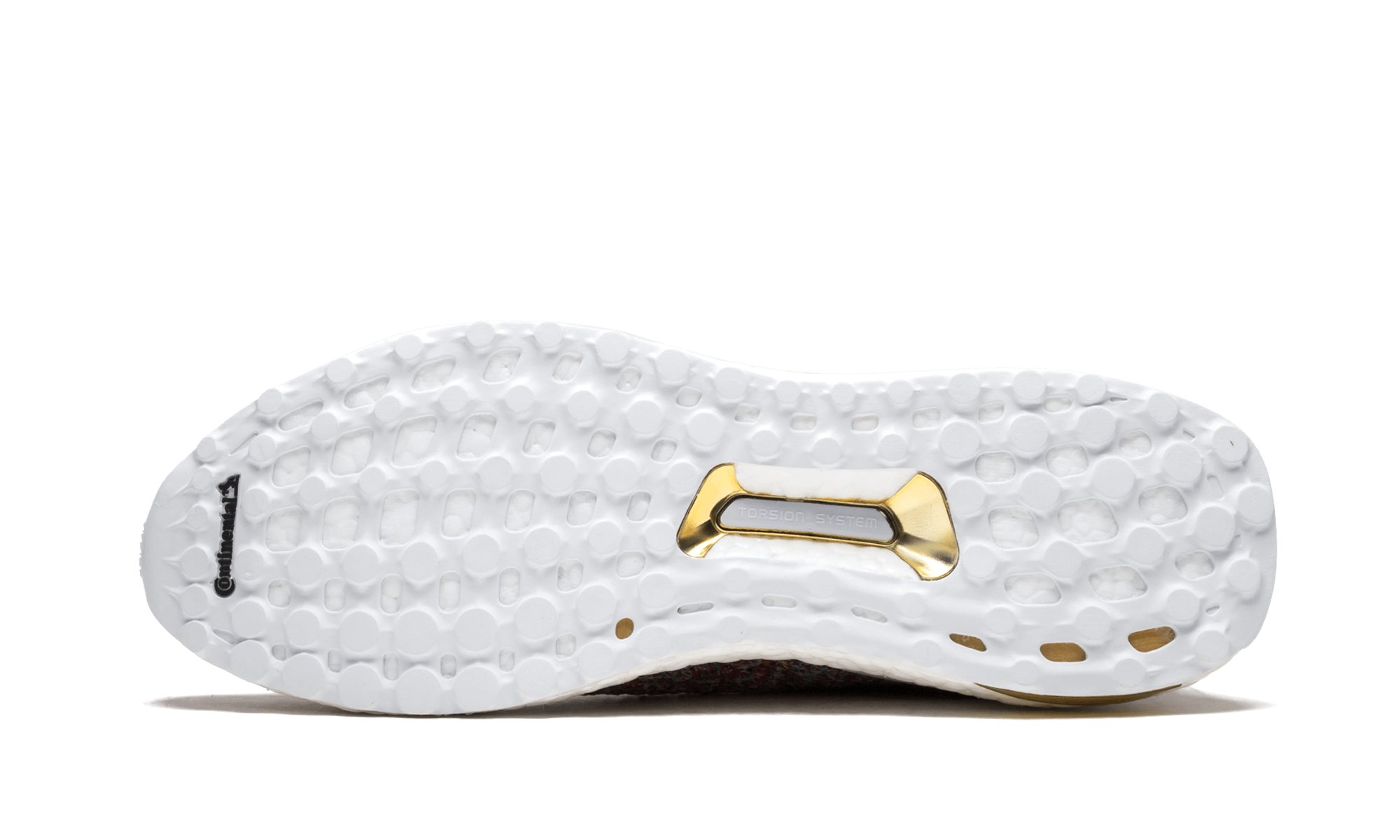 To celebrate the 2018 World Cup, Kith created the "Golden Goal" collection in collaboration with adidas. The Kith x adidas COPA ACE 16+ Purecontrol UltraBoost "Aspen" pays homage to U.S. national soccer teams of yesteryear. It features a mid-top Primeknit upper in red, white, and blue atop an UltraBoost sole.