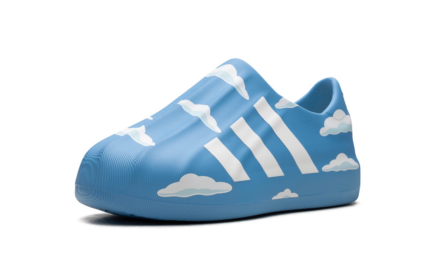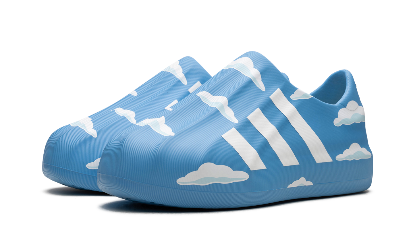 The ADIFOM Superstar LOW 'The Simpsons - Clouds' shoe features a unique Adifom construction, blending classic Adidas Superstar style with a playful design inspired by The Simpsons' clouds, offering a distinct and whimsical aesthetic.