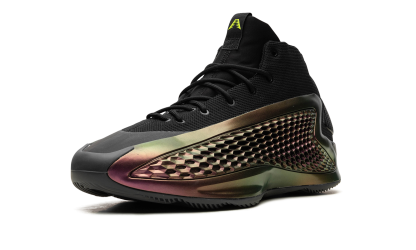 The adidas AE1 "All-Star" is a colorway of Anthony Edwards’s first signature shoe with adidas Basketball in a colorway inspired by the 2024 NBA All-Star Game. The adidas AE1 “All-Star” features an iridescent TPU “cage” with perforations in a honeycomb pattern that assist in breathability. The black Primegreen base is made of recycled materials. Edwards’ signature branding appears on the woven tongue tag, while adidas Three Stripes branding can be found on the heel. The midsole is designed with a combination of adidas’s Boost and Lightstrike cushioning for superior performance and energy return.