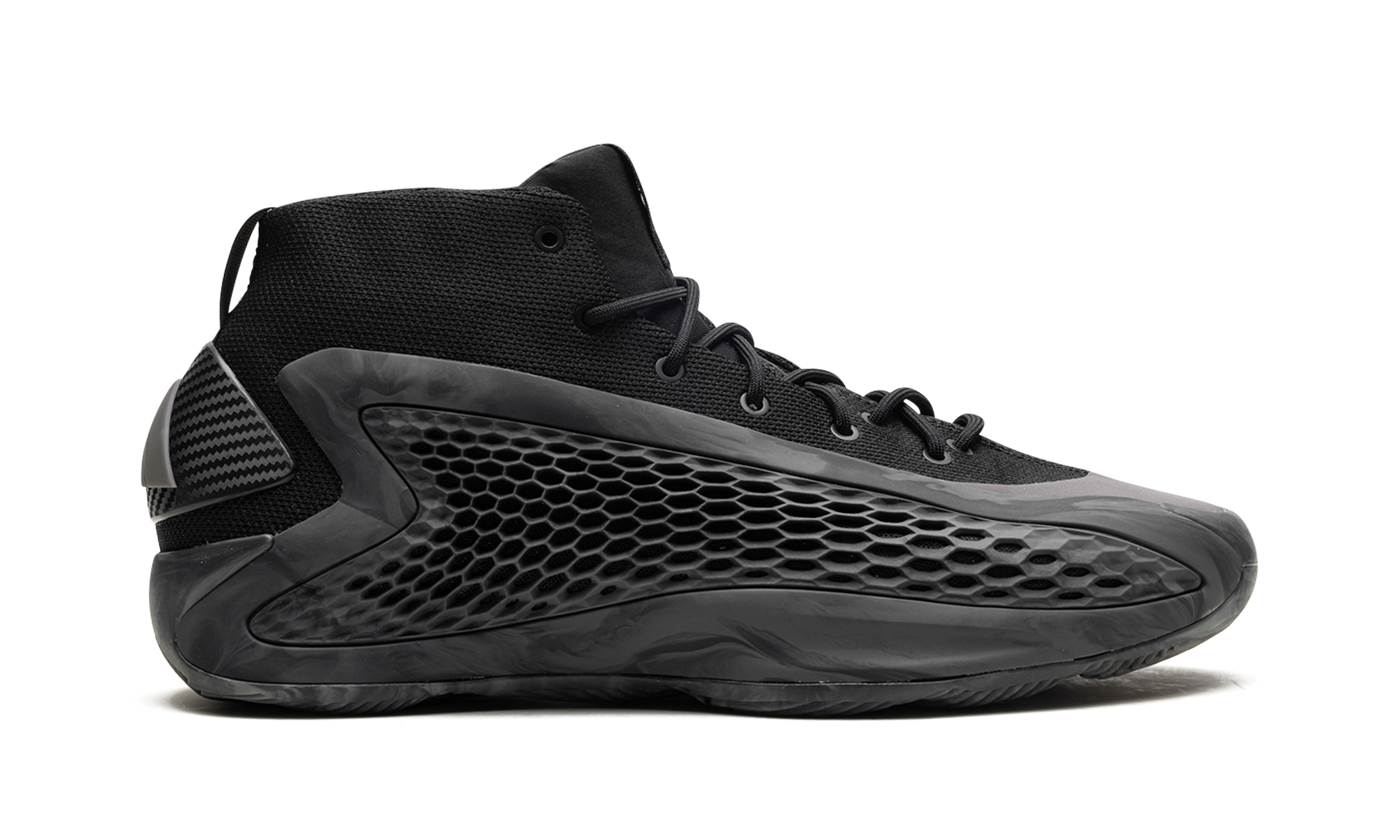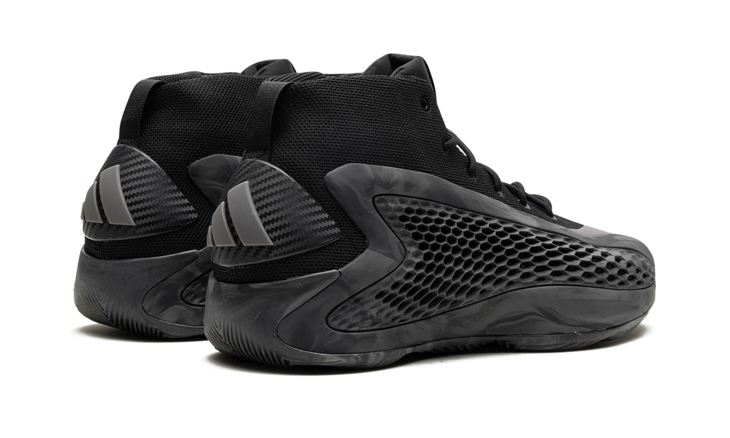 The adidas AE1 "MX Charcoal" is a dark-colored makeup of NBA star Anthony Edwards’ first signature shoe with adidas Basketball. On the “MX Charcoal,” the upper of the shoe features a black knit textile base with a grey marbled TPU “cage” with perforations in a honeycomb pattern that assist in breathability. Edwards’ signature branding appears on the woven tongue tag, while adidas Three Stripes branding can be found on the heel. Underfoot, the midsole is designed with a combination of adidas’s Boost and Lightstrike cushioning for superior performance and energy return. Release date: August 2024