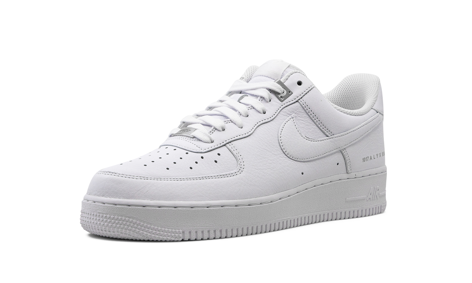 The ALYX x Nike Air Force 1 Low “White” is a collaboration on the classic sneaker by renowned fashion designer Matthew M. Williams. In addition to being the founder of ALYX, Williams is also the Creative Director of Givenchy, the iconic high fashion house. This version of the Air Force 1 by ALYX features a minimalist design, with subtle “1017 ALYX 9SM” branding on the lateral side of the heel. The upper has a premium white leather construction, with an added metal detail on the second-to-the-top lace eyelet. A silver “ALYX” lace dubrae and co-branding on the tongue and insole complete the look. Release date: December 15, 2023 Alyx - White