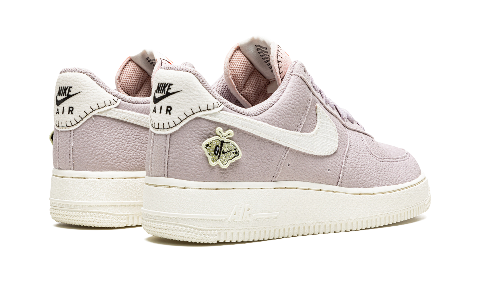 The Women’s Nike Air Force 1 Low SE “Next Nature - Amethyst Ash” is a springtime-inspired colorway of the retro basketball shoe that’s made from at least 20% recycled content by weight. The “Next Nature” Women’s Air Force 1 is from Nike’s “Move to Zero” initiative that aims to reduce the brand’s carbon footprint. The shoe features a pink tumbled leather construction with a contrasting white leather Swoosh on the sides. A Nike branded butterfly emblem is found on the lateral side of the heel. Classic “Nike Air” and Swoosh detailing appear on the white leather heel tab. A pink “AF1” lace dubrae is found on the vamp and continues the monochromatic appearance of the laces and tongue on the front of the shoe. A solid cream-colored rubber sole with completes the look. Next Nature - Amethyst Ash