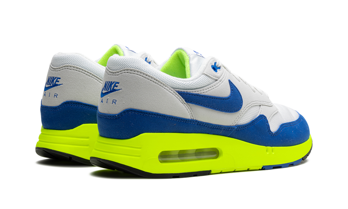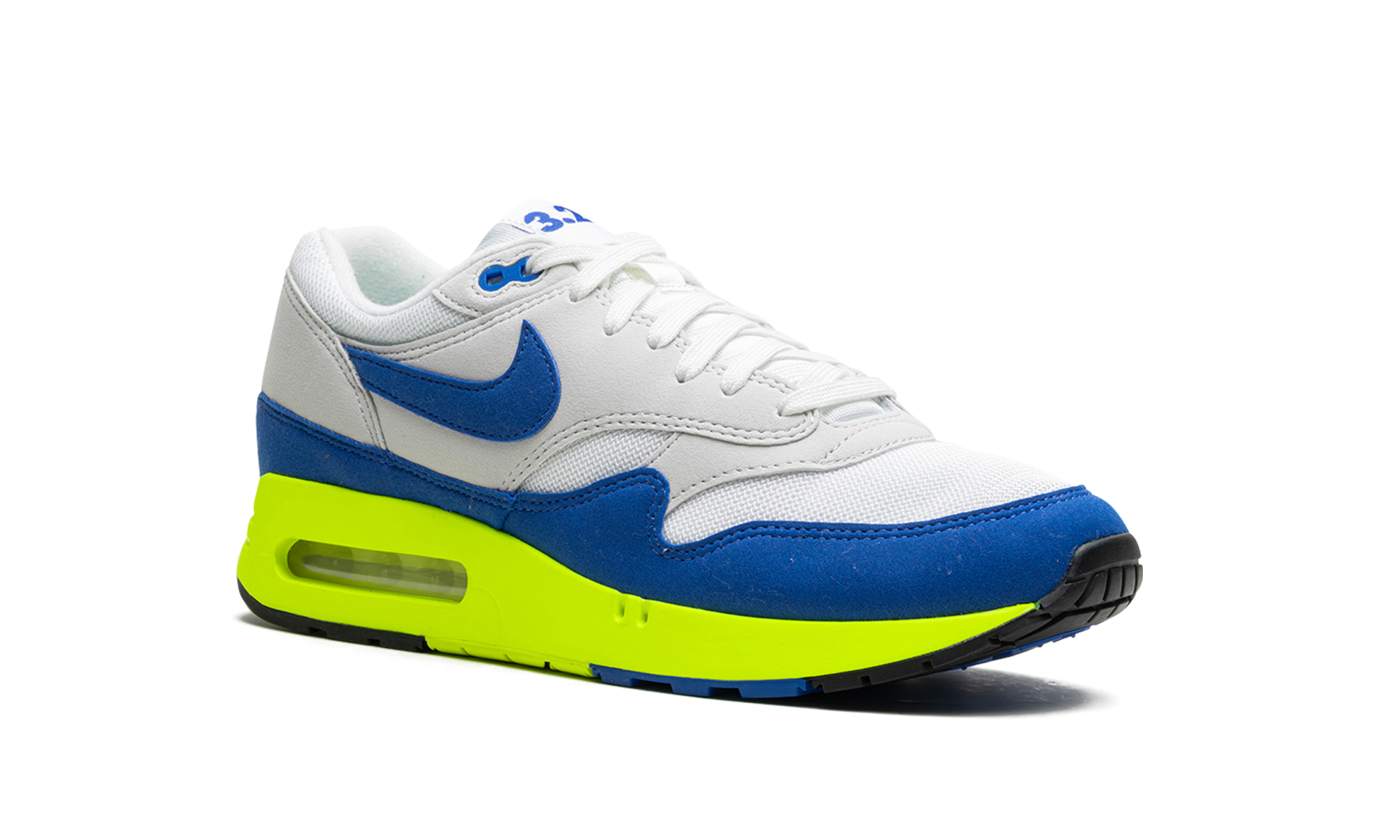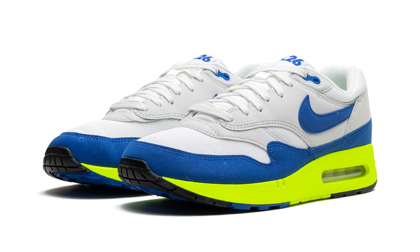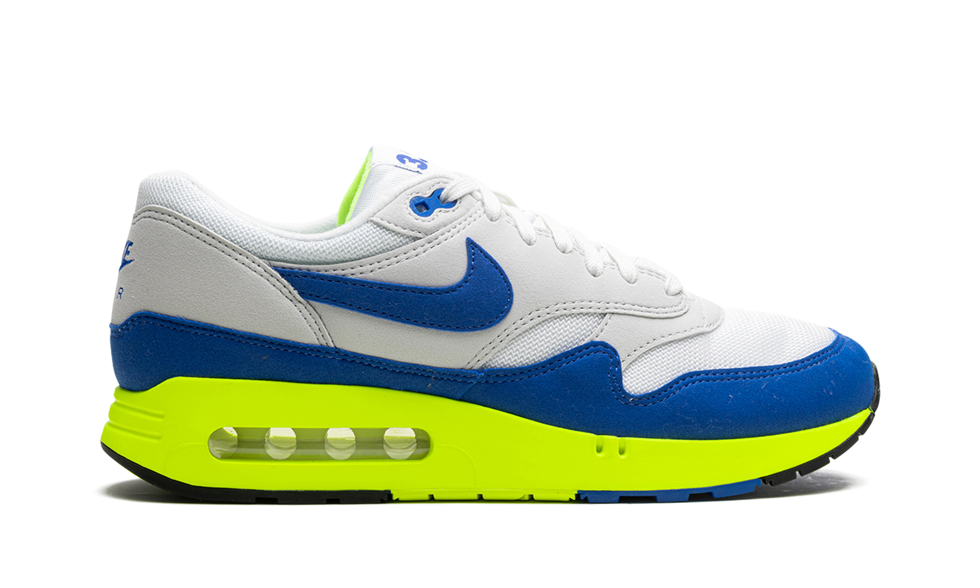 The Nike Air Max 1 ‘86 “Air Max Day - Royal” is a colorway of the retro performance running shoe modeled after the 1986 version of the model. The Air Max 1 ‘86 is based on the first iteration of the Air Max 1 that was in production in 1986 before the model debuted in 1987 with a slightly smaller visible Air unit. This “Air Max Day - Royal” edition was released as part of Nike’s Air Max Day event in 2024. The upper features a white mesh base and Natural Grey overlays. A Royal Swoosh appears on the sides. More Royal accenting appears on the “Nike Air” branding on the heel, on the “3.26” detailing on the tongue, on the mudguard, and on the top eyelets. The Air Max 1 ‘86 features a larger Air unit in the heel of the midsole that mimics the version of the shoe from ‘86. Lastly, the “Air Max Day - Royal” is complete with a Volt-colored midsole for a head-turning look. Release date: March 26, 2024 Air Max Day