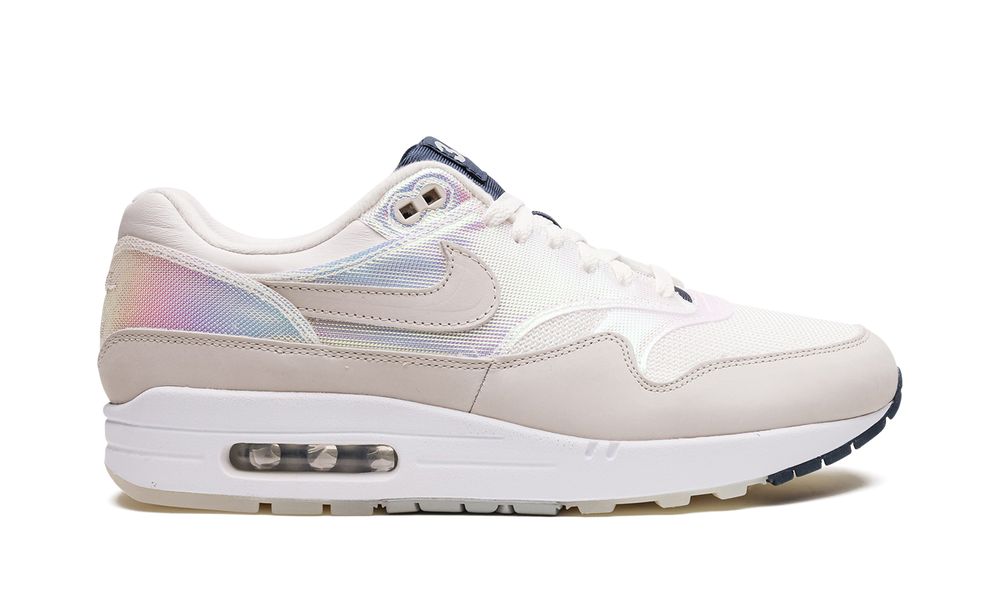 The Women’s Nike Air Max 1 “La Ville Lumière" is a special colorway of the classic shoe in women’s sizing that was released exclusively in Europe on Air Max Day 2022. A clean, luxurious spin on the Air Max 1, the “La Ville Lumière” colorway dons a cream mesh base with a tonal leather mudguard. The textile overlays on the forefoot, mid-panel, and heel feature an iridescent finish. A cream leather Swoosh appears on either side of the shoe and tonal “Nike Air” and Swoosh branding is found on the heel. Special “3.26” branded tongue tags nod to the date of Nike’s Air Max Day. Release date: March 26, 2022 La Ville Lumière