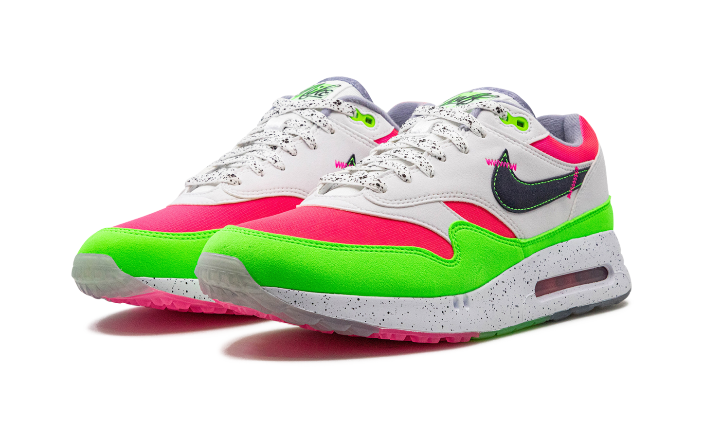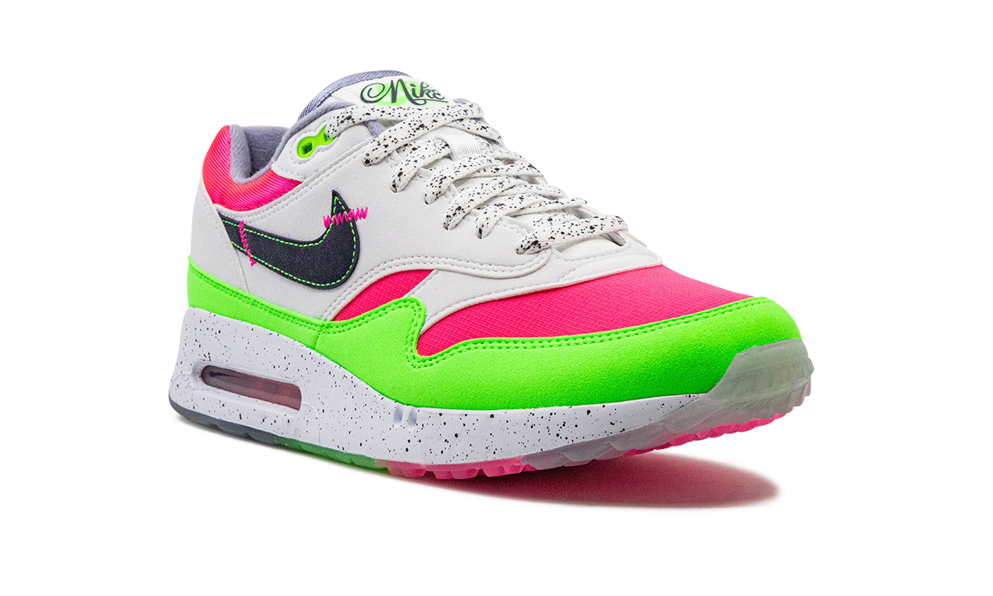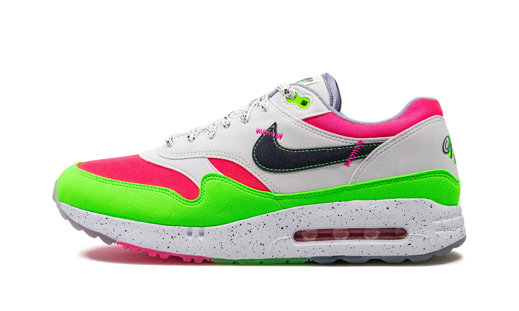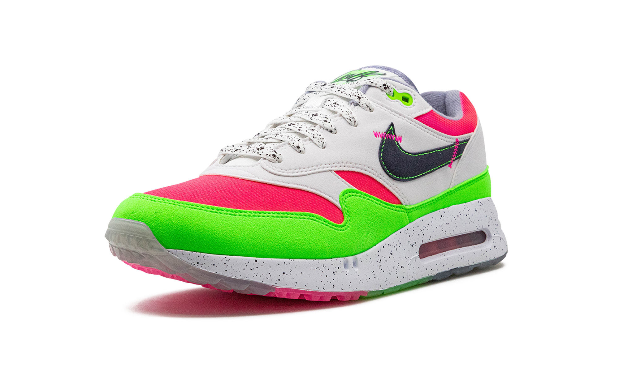 The Nike Air Max 1 Golf “Watermelon” is a colorway of the golf version of the retro running shoe inspired by the summertime fruit. The Air Max 1 Golf is one of multiple classic Nike and Jordan Brand silhouettes that have been remade for the golf course in 2023. For this colorway, the shoe features a summertime-inspired look that draws inspiration from none other than a watermelon. Coral Chalk-colored mesh appears on the base while white leather is found on the overlays. A Green Strike leather mudguard adds another layer of color to the design. Underfoot, the Air Max 1 Golf features a white foam midsole with speckling and nubs on the outsole that provide traction on the fairway. Release date: June 13, 2023 Watermelon