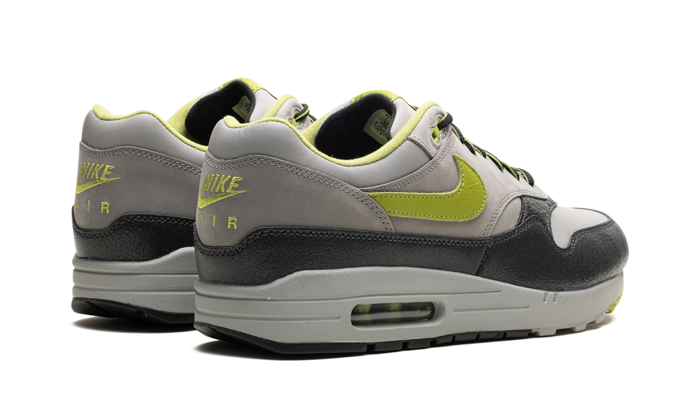 The HUF x Nike Air Max 1 SP “Pear” is a collaboration between the San Francisco based skate brand and Nike on the retro running shoe. From a three-piece collection, the “Pear” celebrates the 20th anniversary of the brand’s first project released in 2004. Moreover, the pack is inspired by an unreleased sample Air Max 1 by HUF. Here, the upper features a grey nubuck construction with Anthracite-colored cracked leather on the forefoot overlay and mudguard. Pear accenting can be found on the leather Swoosh, “Nike Air” branding on the heel, the co-branding on the tongue tag, and inner lining. Two-tone black-and-green laces complete the look. Release date: June 15, 2024 HUF - Pear