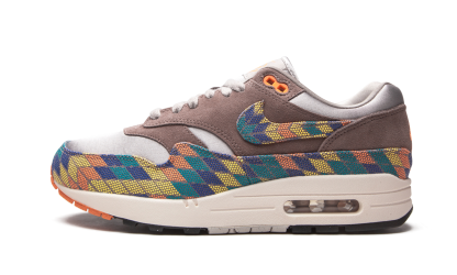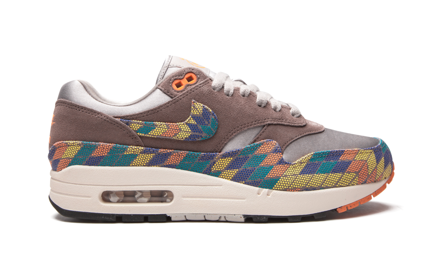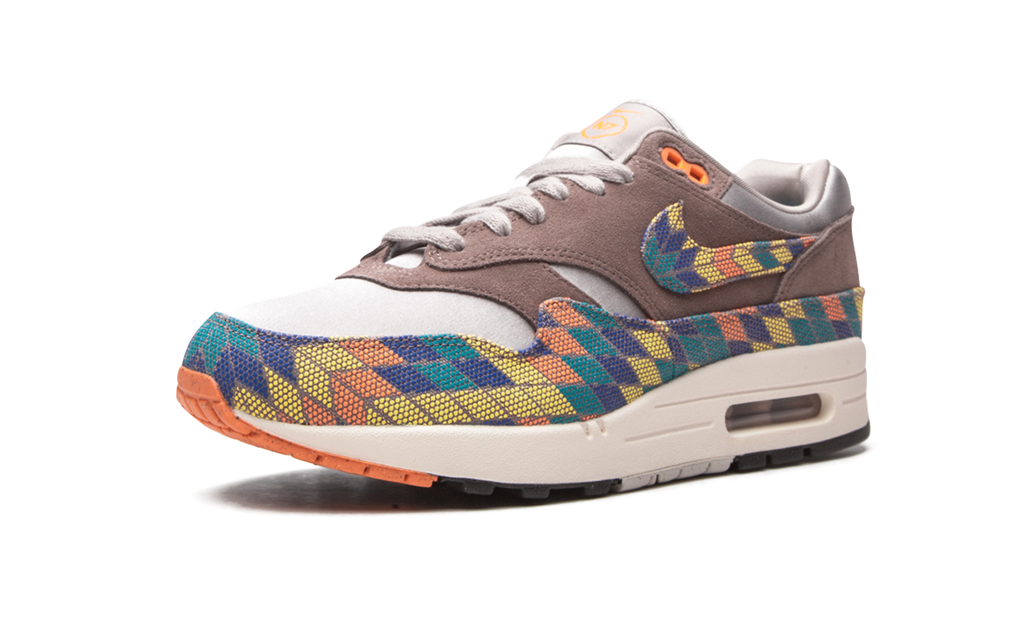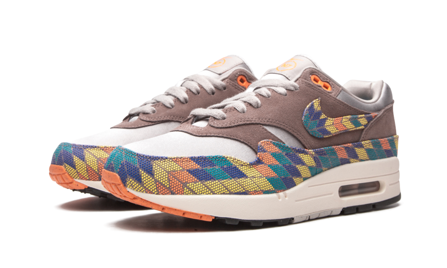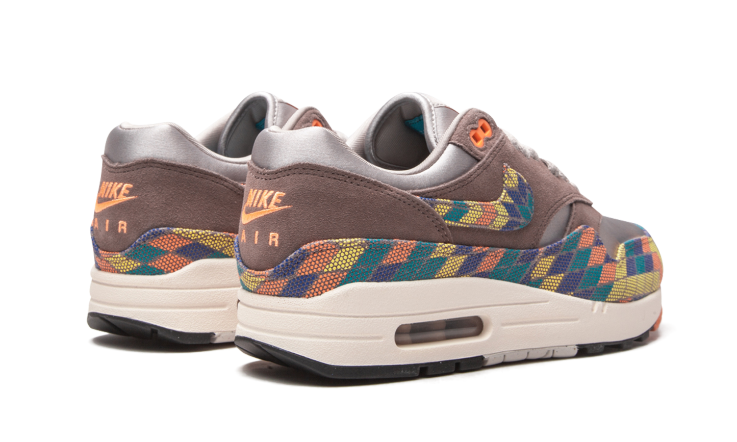 The Nike Air Max 1 “N7” is a Winter 2020 release of the timeless running shoe that celebrates Native American Heritage Month. For its Winter 2020 N7 collection, Nike turned to Kyrie Irving for input on the design, citing his Lakota Sioux heritage. A plush light brown suede material is laid atop the grey mesh base. A multicolor Native American-inspired pattern adorns both the Swoosh and mudguard. The “Nike Air” embroidery on the heel and the “N7” detailing on the white nylon tongue are finished off in orange. Further, the top eyelets also feature the same fiery hue. A visible Air bubble in the heel of the cream colored midsole completes the look. N7
