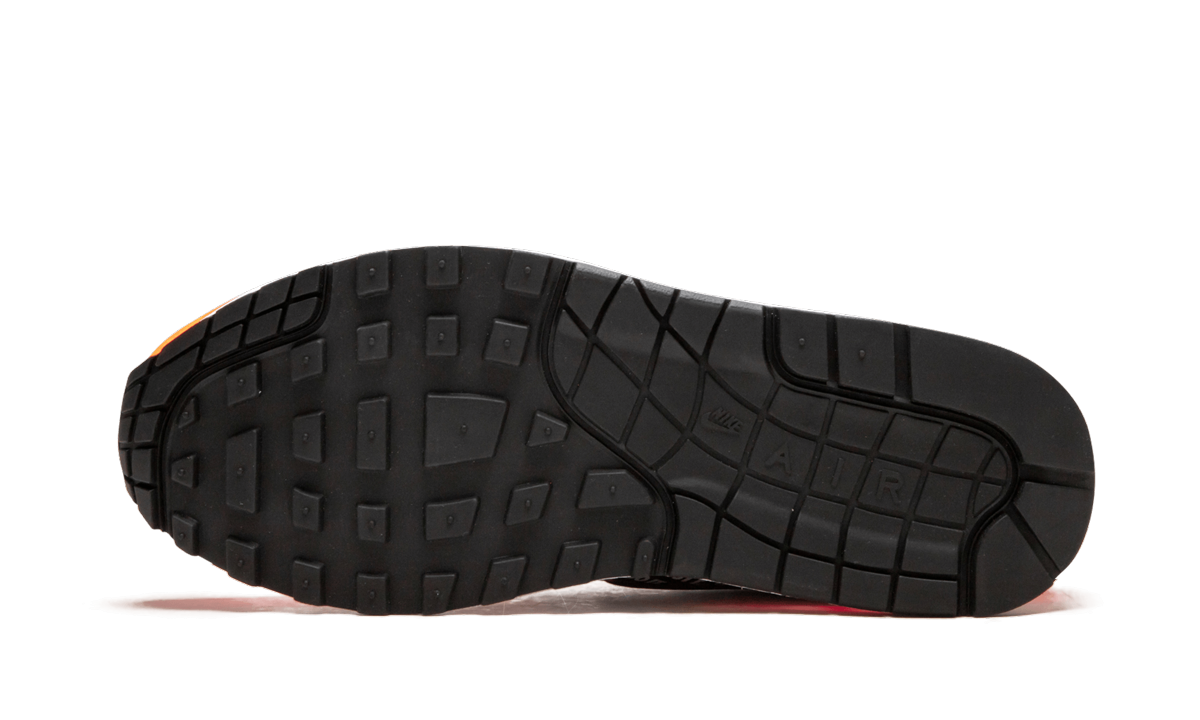 The Nike Air Max 1 Premium celebrates the brand's unforgettable "Just Do It" phrase that has spoken to professional and amateur athletes all over the world. Designed with a black base, an all-over, overlapping "Just Do It" graphic appears on most of the upper. Despite a busy graphic pattern, solid orange steals the show on the Nike runner's signature mudguard, tongue, lining, and Air Max bubble. The Nike Air Max 1 Premium comes with a stark white midsole for contrast and a black outsole underneath. Just Do It