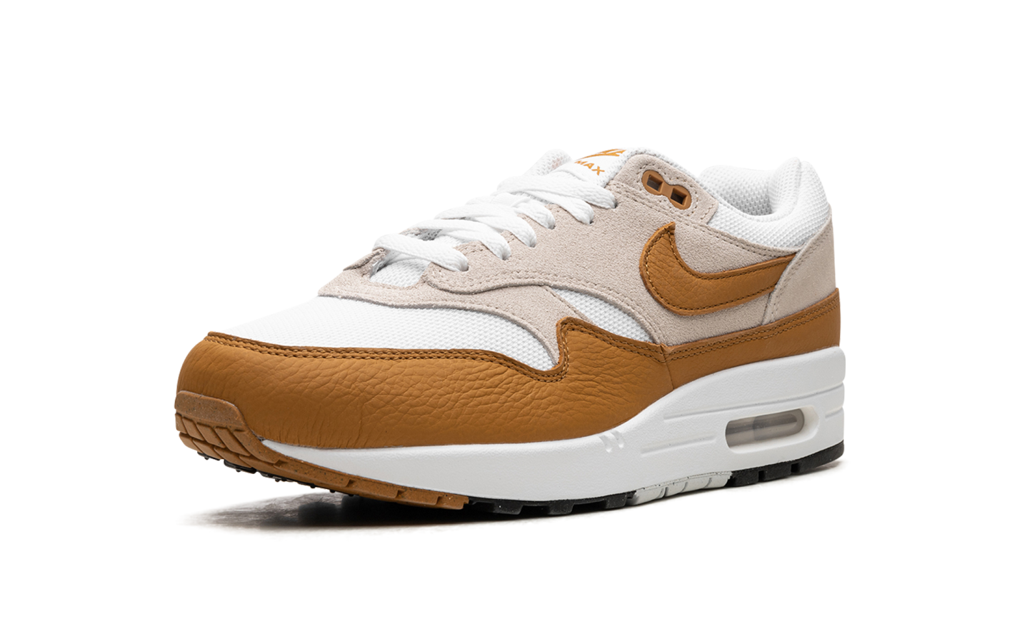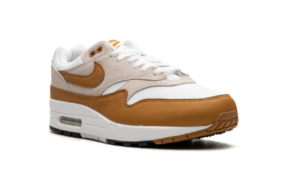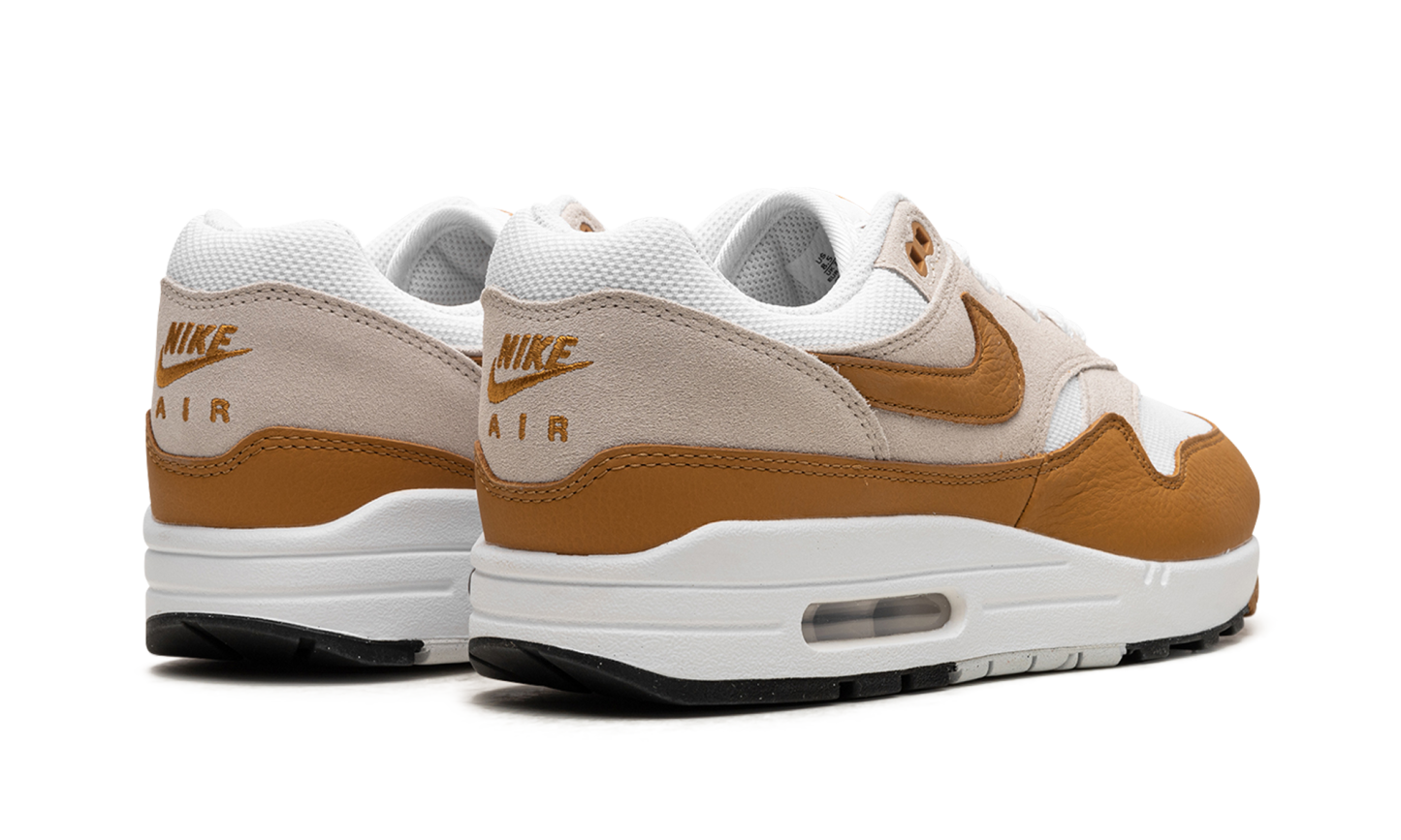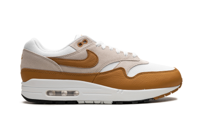 The Nike Air Max 1 SC "Bronze" is a colorway of the retro performance running shoe with an autumn-inspired look. The “Bronze” rendition features a white mesh base with light grey suede overlays on the vamp, eyelets, mid-panel, and heel. A Bronze leather Swoosh appears on each side of the shoe. The autumn-esque hue is also found on the leather mudguard, as well as on the “Nike Air Max” branding on the tongue tag and “Nike Air” branding on the heel. The shoe’s white foam midsole has a visible Air cushioning unit in the heel. Release date: July 7, 2023 Bronze