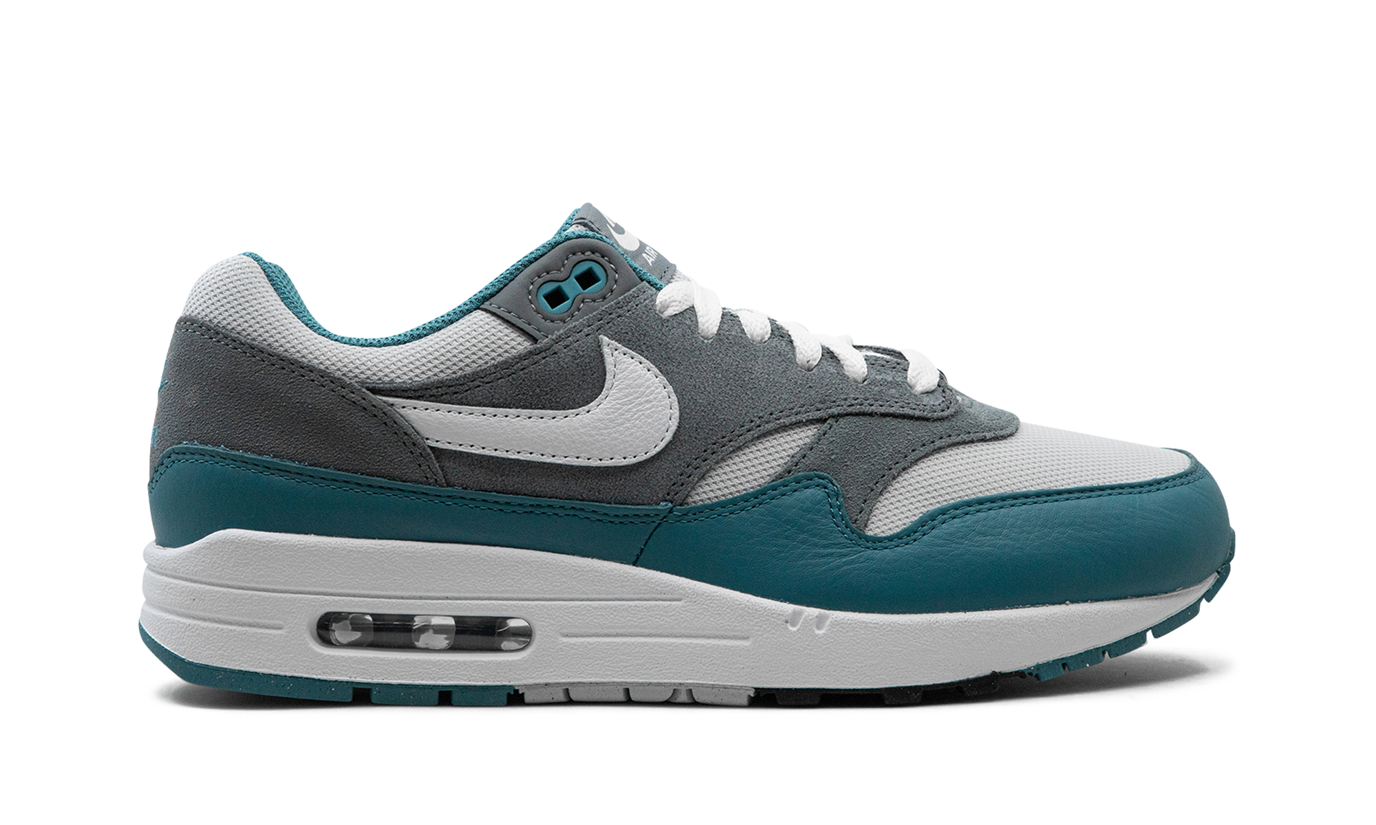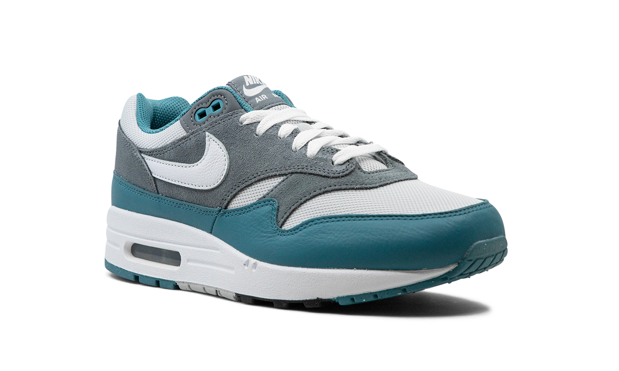 The Nike Air Max 1 “Noise Aqua” is a colorway of the retro performance running shoe with aqua-colored details. Designed by iconic Nike footwear designer Tinker Hatfield and originally released in 1987, the Air Max 1 is one of the most essential shoes in Nike’s storied history. The “Noise Aqua” colorway features a white mesh upper contrasted with a grey suede overlay on the midfoot and heel. A Noise Aqua-colored leather mudguard adds a pop of color to the design. White leather Swoosh branding appears on each side of the shoe, while classic “Nike” detailing can be found on the heel and tongue tag. A visible Air unit appears in the heel of the white foam midsole, completing the impressive look. Release date: October 29, 2023 Noise Aqua