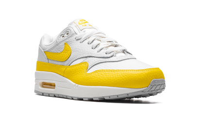 The Women’s Nike Air Max 1 “Tour Yellow” is a women’s-only colorway of the retro running shoe with bold yellow accents. The “Tour Yellow” Air Max 1 turns heads with its Tour Yellow-colored tumbled leather Swoosh and mudguard. Additional yellow detailing comes into play on the “Nike Air” branding on the heel and the “Nike Air Max 1” insignia on the tongue tag. The shoe features a white mesh base with tonal leather overlays. A visible Max Air unit is found in the heel of the midsole. Release date: September 27, 2022 Tour Yellow