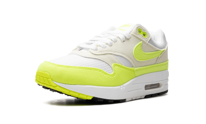 The Women’s Nike Air Max 1 "Volt" is a women’s-exclusive colorway of the retro running shoe with eye-catching neon green accenting. The shoe is complete with a white mesh base that’s contrasted with Volt on the Swoosh and mudguard in a slightly fuzzy felt material. Additional Volt accenting can be found on the top eyelet holes and on the “Nike Air” branding on the heel and on the “Nike Air Max 1” detailing on the tongue tag. A visible Air unit is found in the heel of the white foam midsole. Release date: August 31, 2023 Volt
