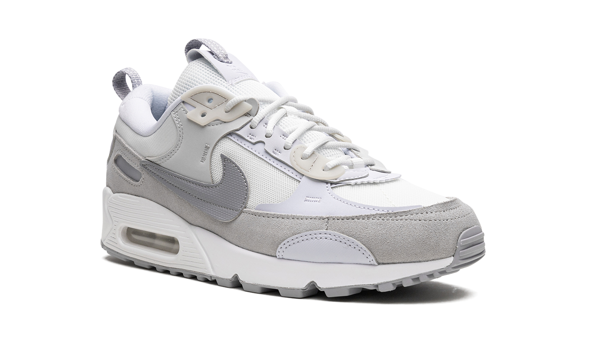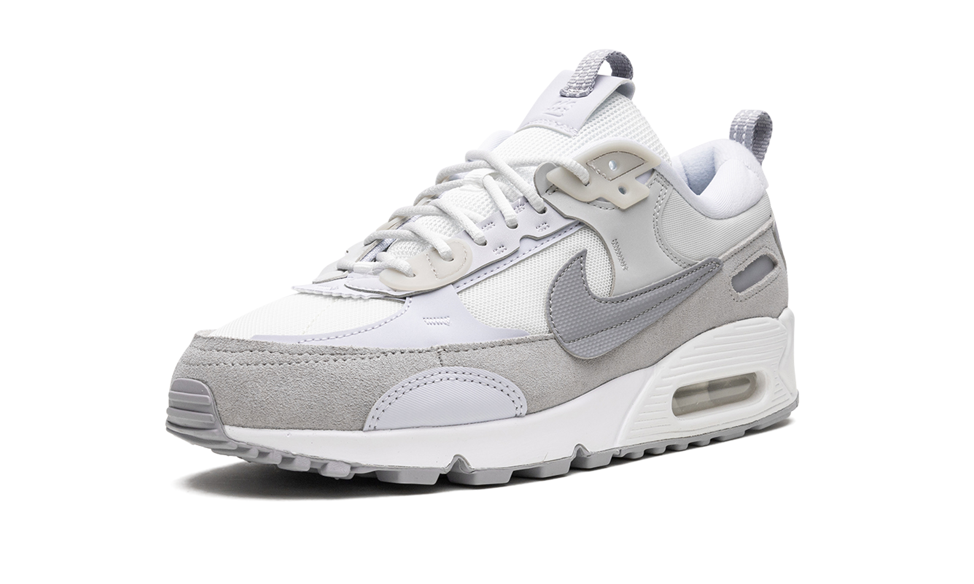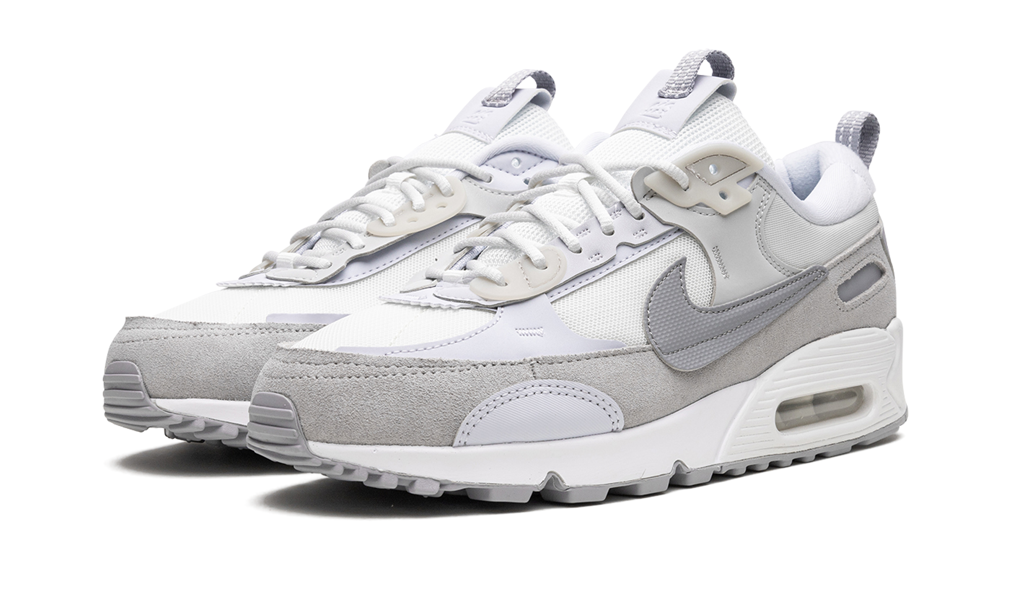 The Women’s Nike Air Max 90 Futura “Summit White/Pure Platinum” is an alternate, women’s-exclusive edition of the vintage running shoe that modifies its design with an oversized Swoosh and other updates. The Air Max Futura revamps the Air Max 90’s classic design for the present—and future—with a new design concept that includes a mesh base, rough-cut overlays, and an oversized Swoosh on either side that draws favorably from Off-White and Sacai’s progressively-designed sneaker collaborations with Nike. The “Summit White/Pure Platinum” features all of the details mentioned above in a combination of white and grey tones. Summit White / Pure Platinum