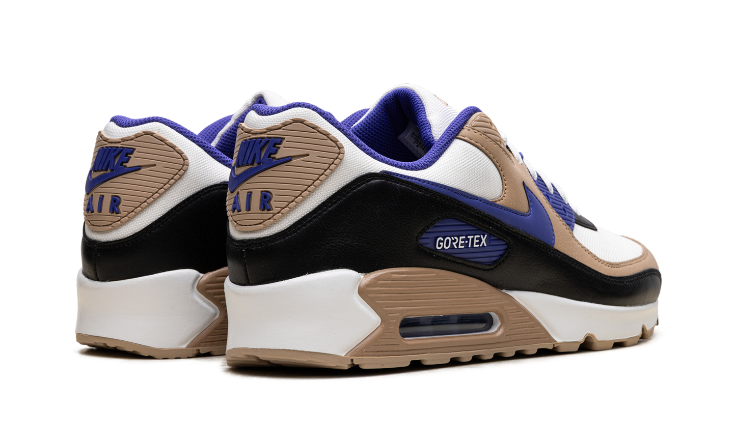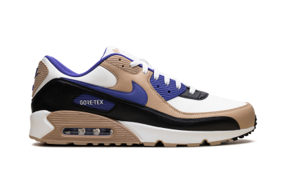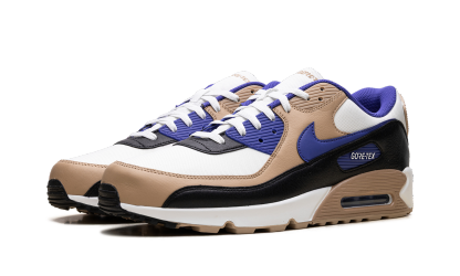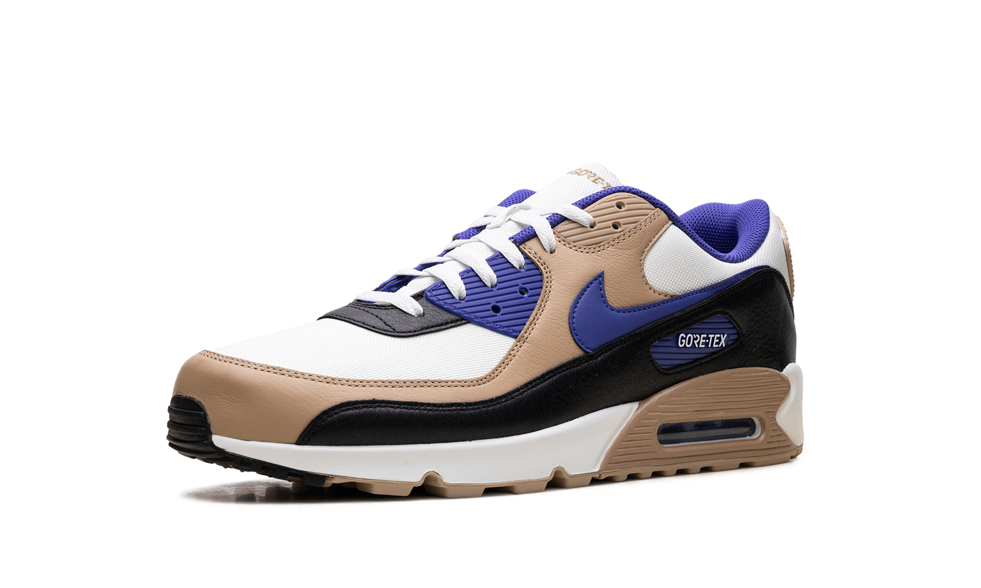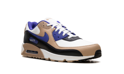 The Nike Air Max 90 Gore-Tex "Lapis" is a colorway of the retro running shoe with a water-resistant construction. Ideal for inclement weather conditions, the Air Max 90 Gore-Tex in “Lapis” features a water-resistant Gore-Tex membrane that helps keep water from reaching the wearer’s foot. As for the rest of the design, the shoe features a white canvas base with hemp-colored leather overlays and a Lapis leather Swoosh. More Lapis accenting can be found on the eyelet panels, inner lining, and “Air Max” branding window on the side. Classic “Nike Air” detailing is located on the heel while “Gore-Tex” branding is found on the tongue. Release date: September 14, 2023 Lapis